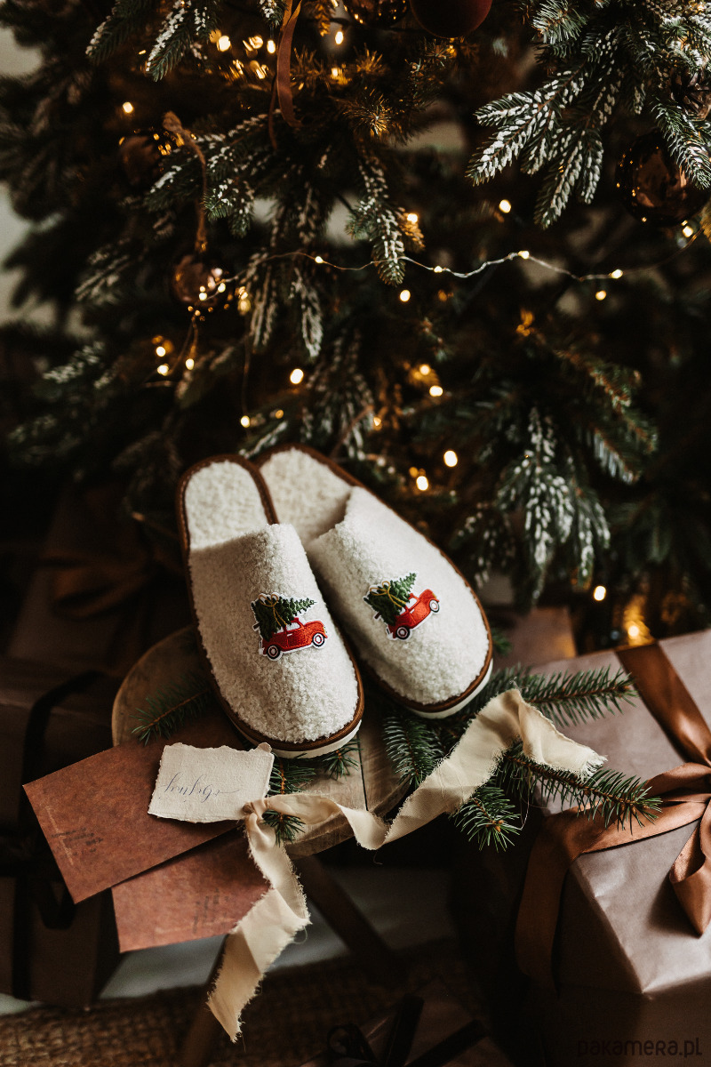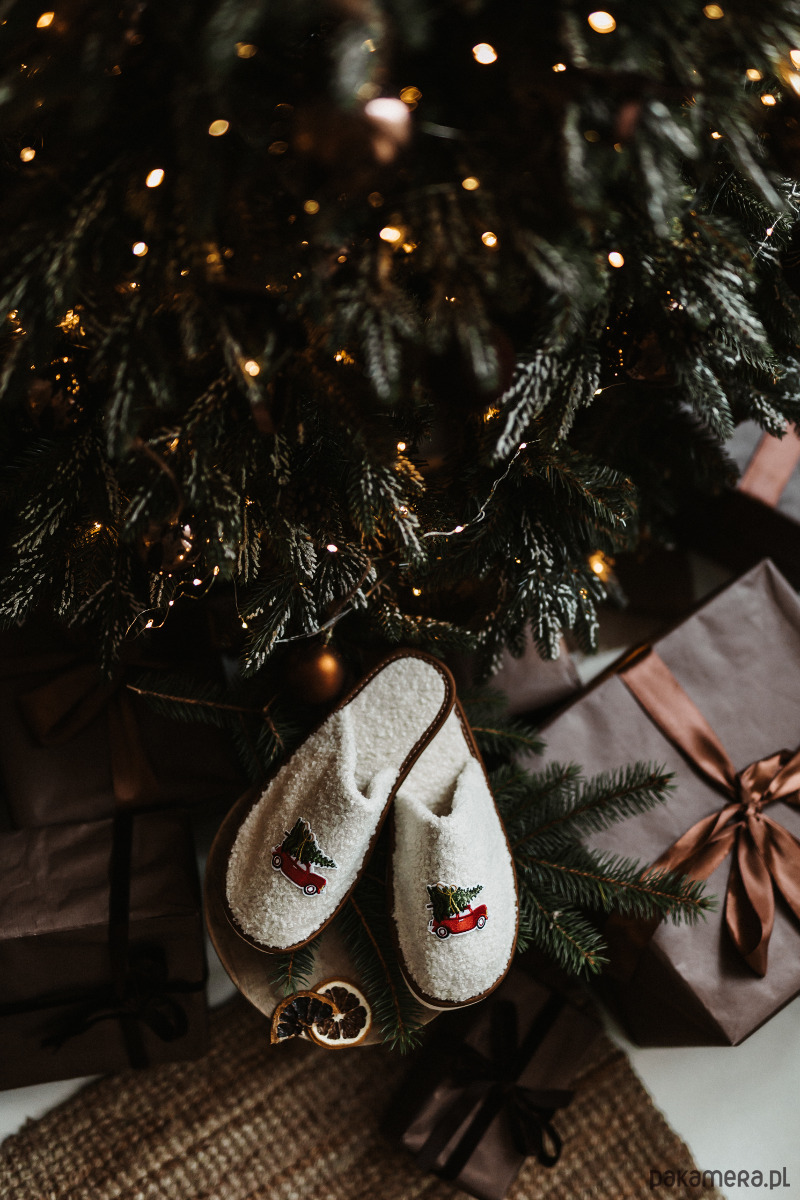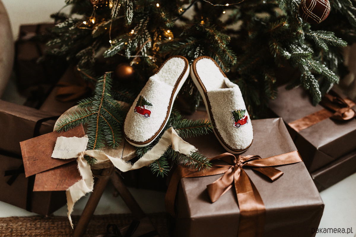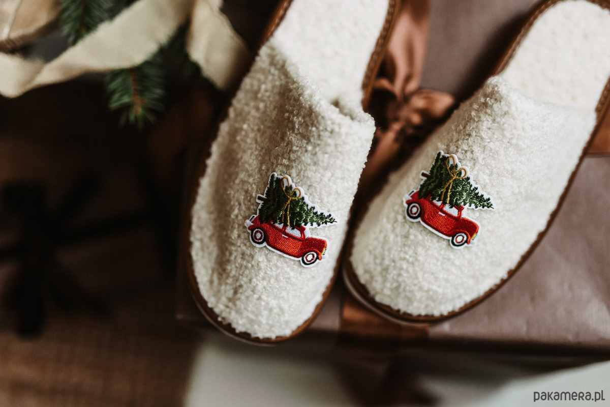 Te kapcie są idealne dla wszystkich, którzy już w listopadzie nucą "Last Christmas". Są mięciutkie, ciepłe i pełne świątecznego uroku. Te kapcie to prawdziwy " domowy hygge klasyk" - otulają stopy miękką tkaniną, a ich świąteczna aplikacja z czerwonym autkiem i choinką przypomina najbardziej magiczny moment grudnia: kiedy choinka jedzie do domu...