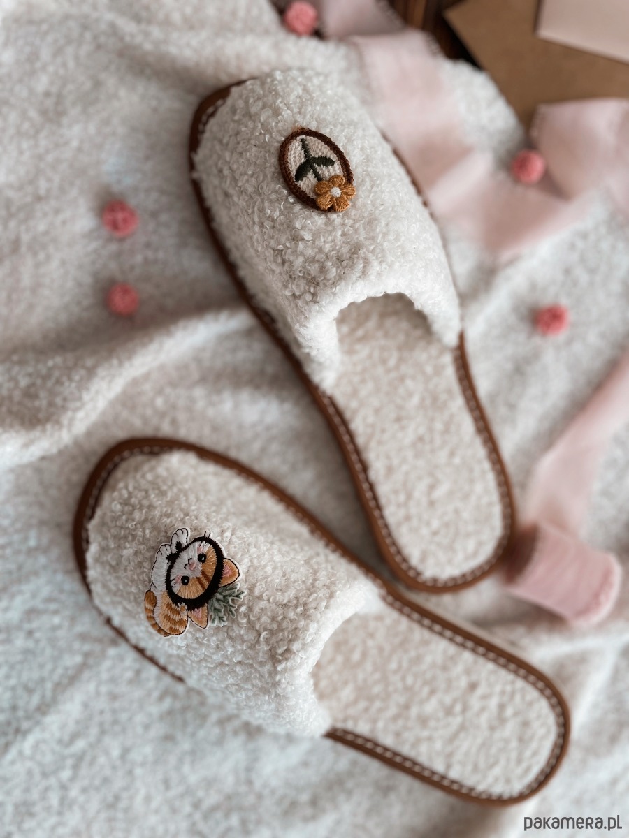 Kapcie są niezwykle miękkie, lekkie i ciepłe. Delikatne kolory i słodka aplikacja sprawiają, że prezent jest nie tylko praktyczny, ale i pełen uroku.