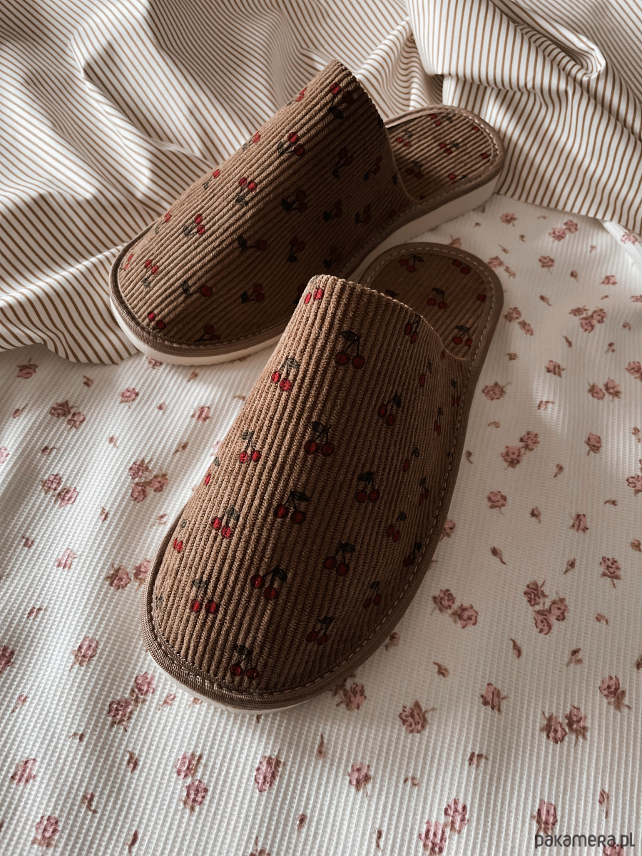 Kapcie damskie pełne z nadrukiem Cherry