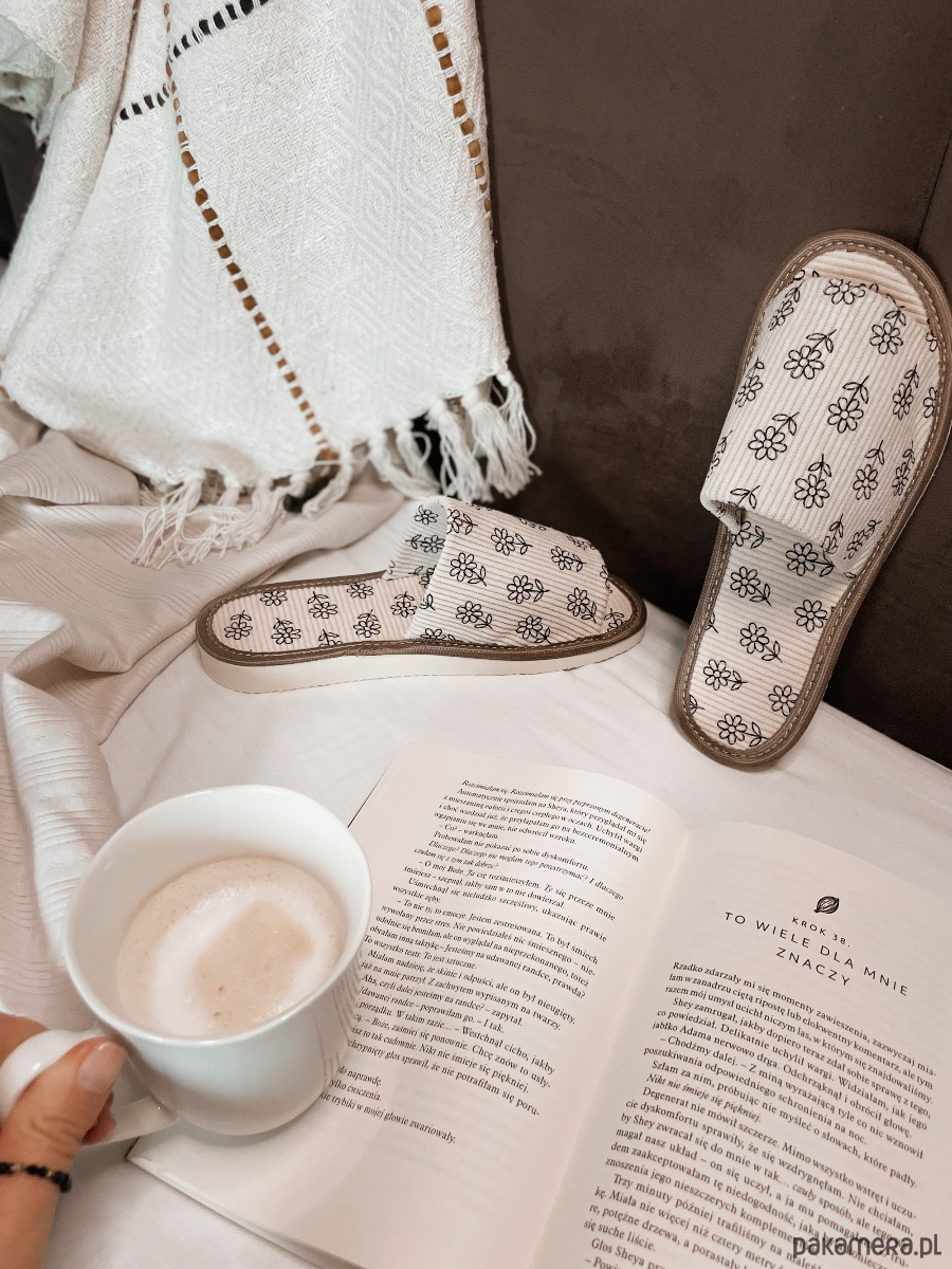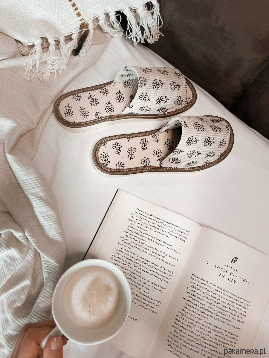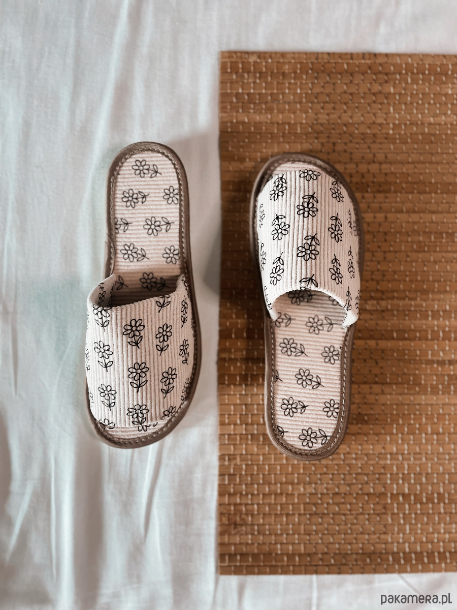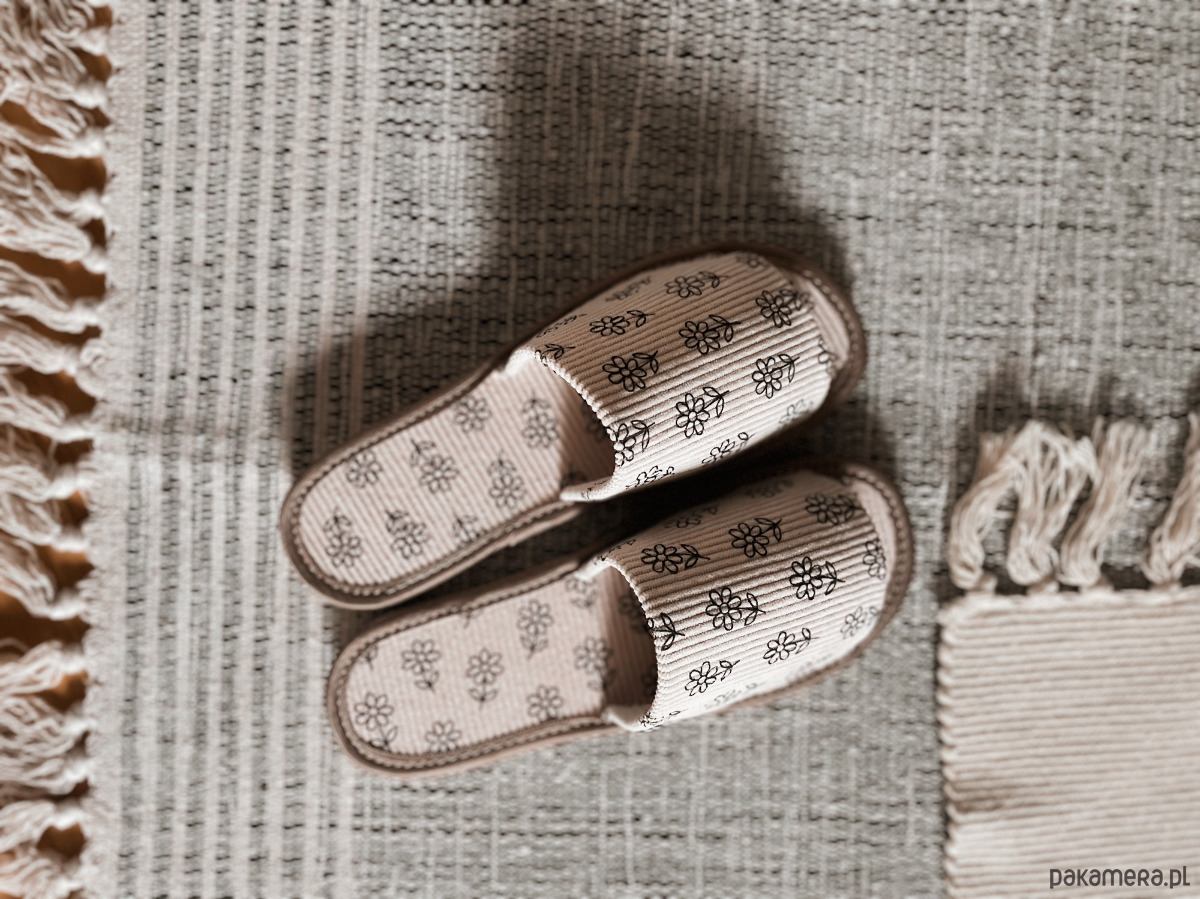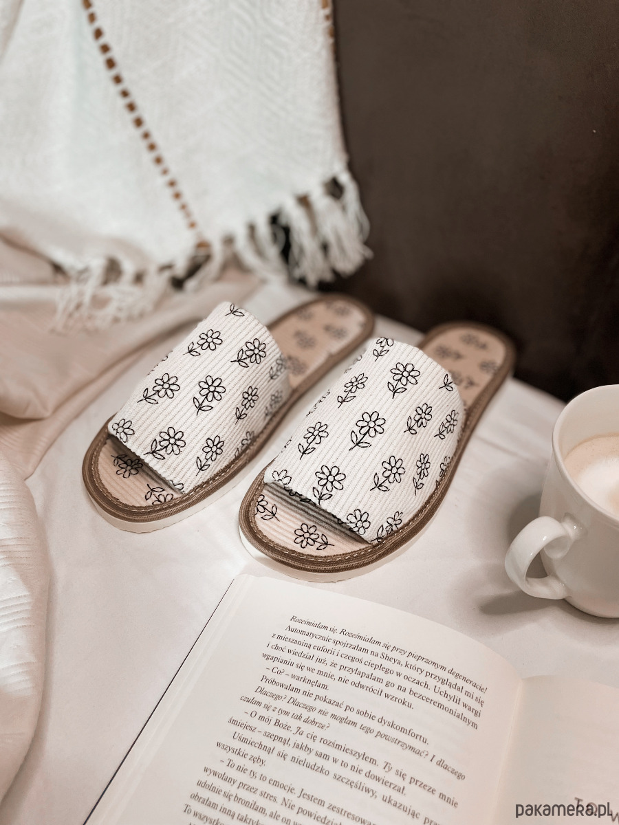 Delikatny, kwiatowy wzór wnosi do wnętrza lekkość i spokój, jakby ktoś zostawił w nim odrobinę ogrodu. To kapcie, które nie tylko dają komfort, ale też budują nastrój – ciepły, kobiecy i naturalny.