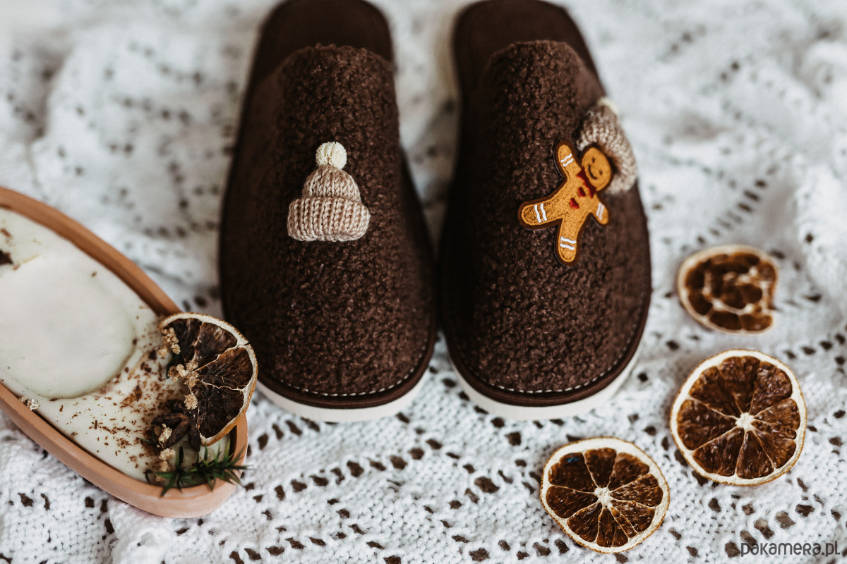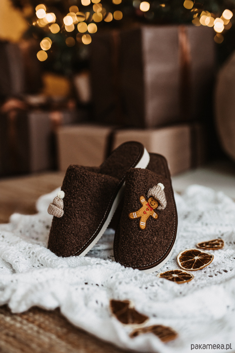 Kapcie damskie "Zimowy Piernikowy Ludzik"