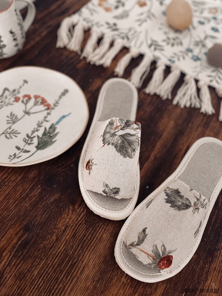 Te kapcie są jak spokojny poranek przy lnianej zasłonie i filiżance kawy – miękkie, bliskie naturze.