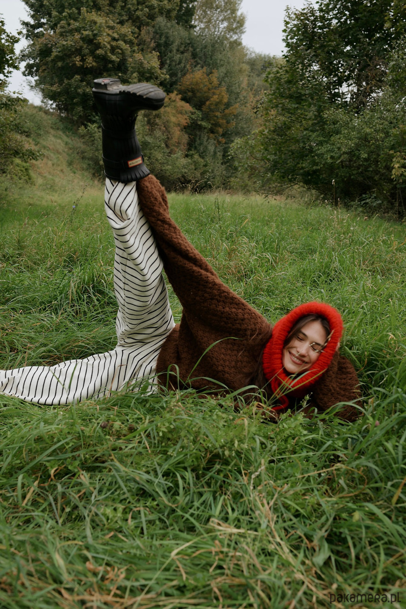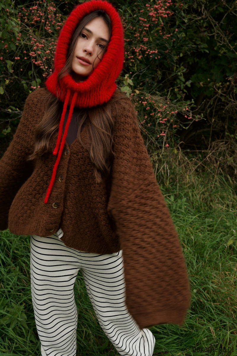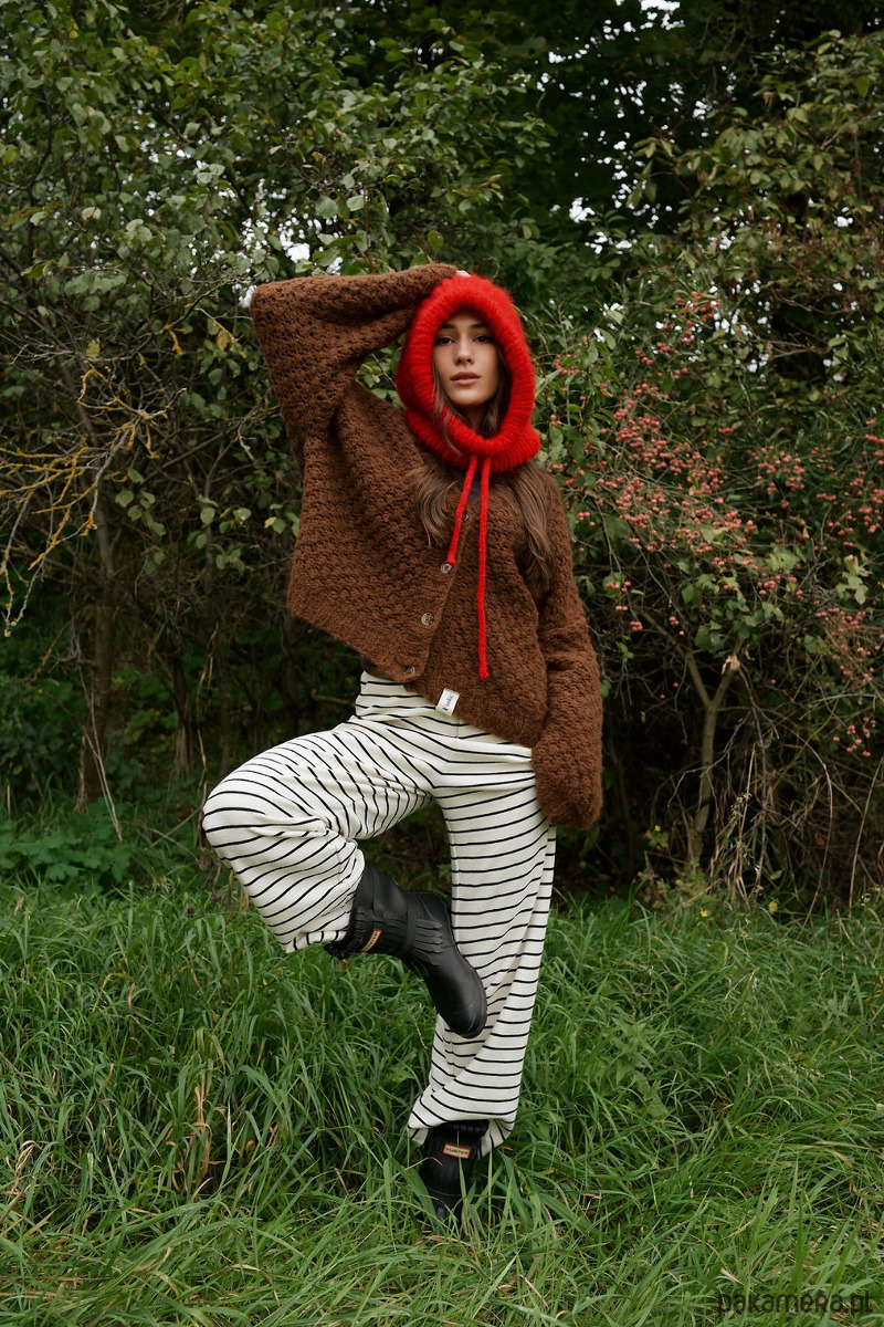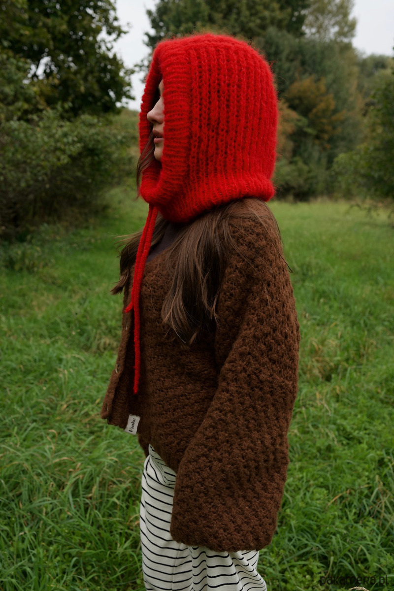 Gruby, ciepły, mięsisty komin ręcznie robiony na drutach, otuli Twoją szyję i głowę przed zimnem i wiatrem.