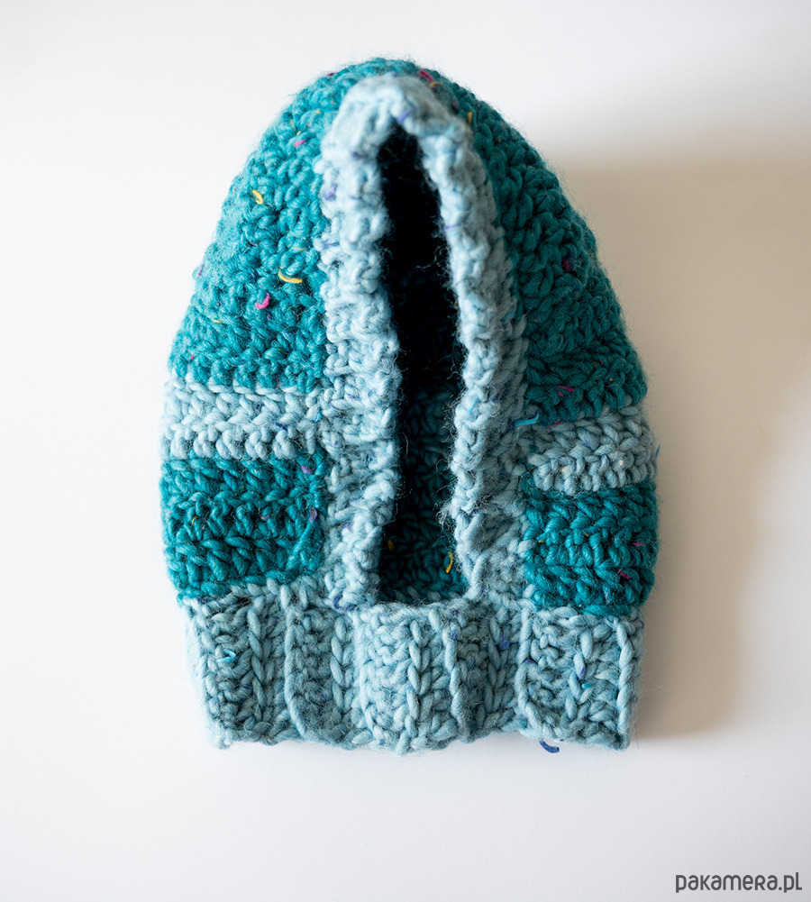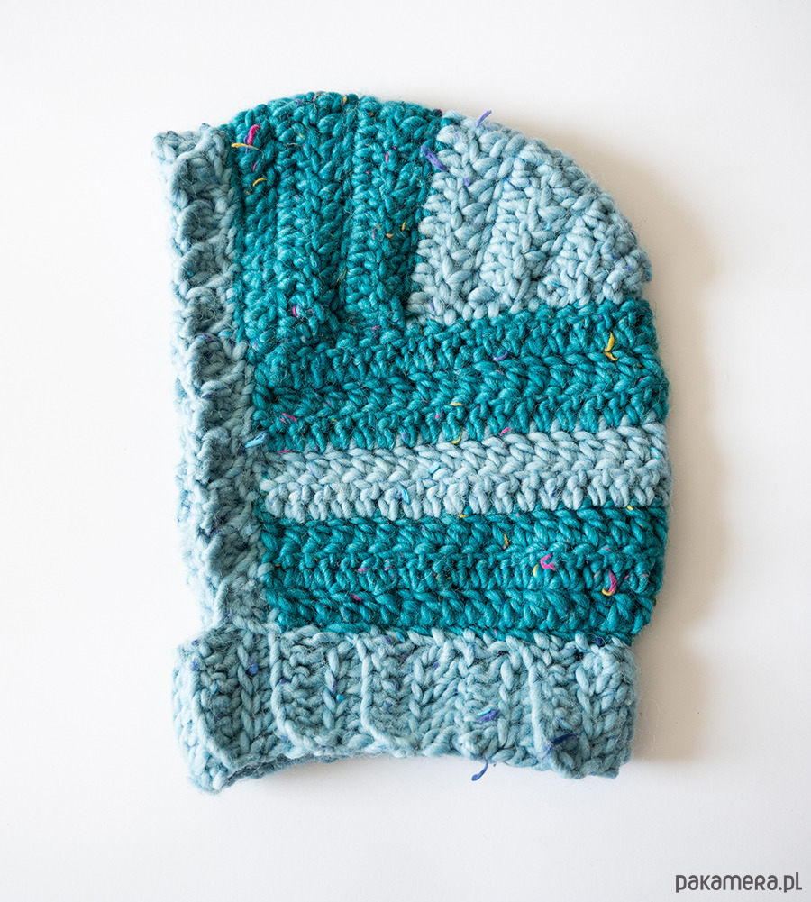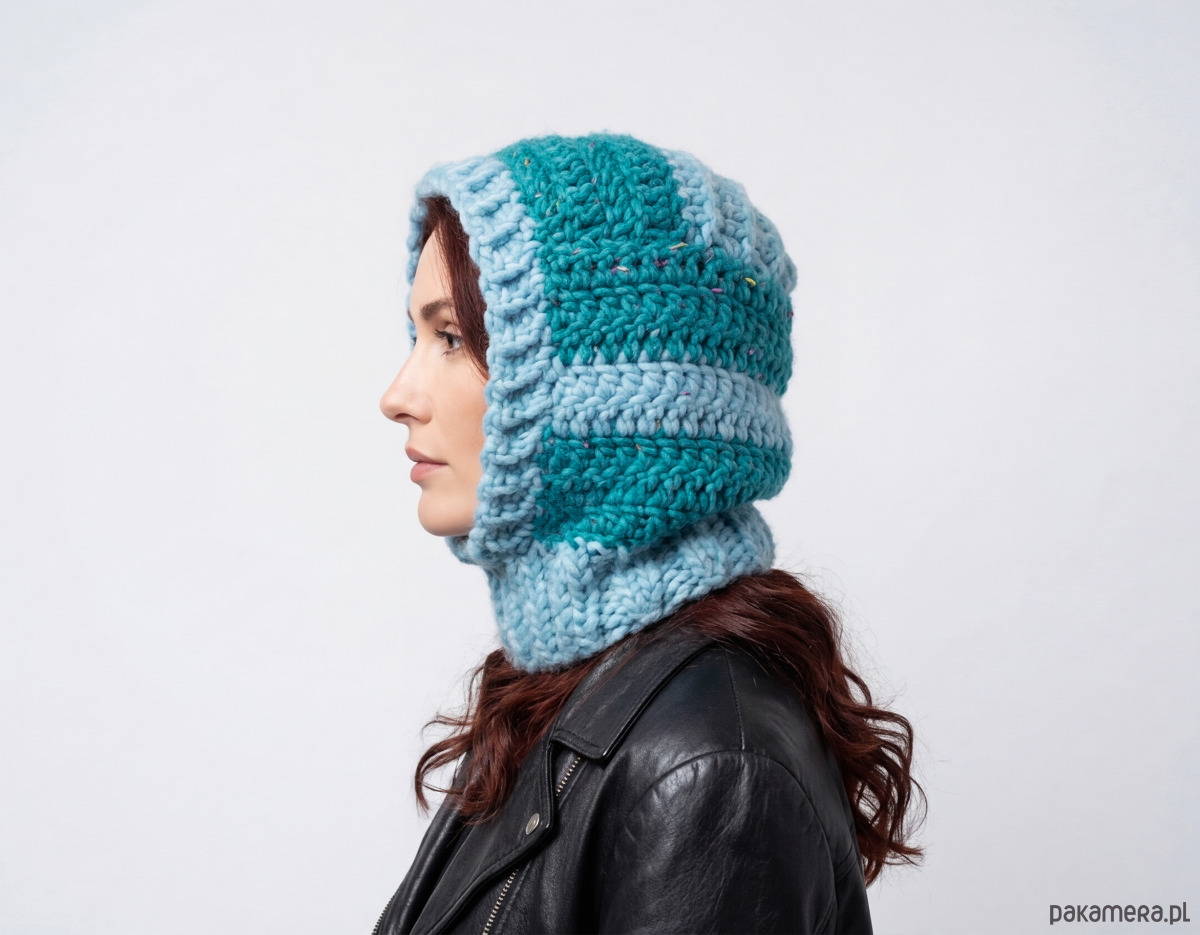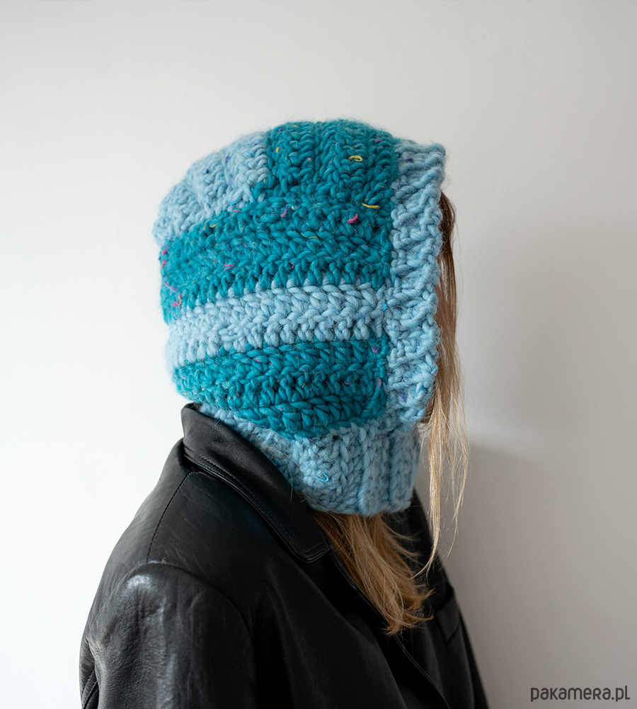 Balaclava / kapturek ręcznie wykonany na drutach z grubej wełny.