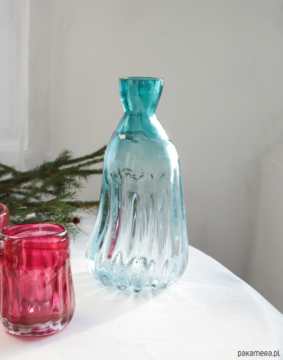 W trakcie ręcznego formowania mogą powstać naturalne niedoskonałości, takie jak pęcherzyki powietrza w szkle, które podkreślają autentyczny charakter wyrobu.