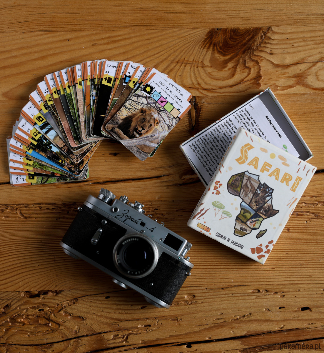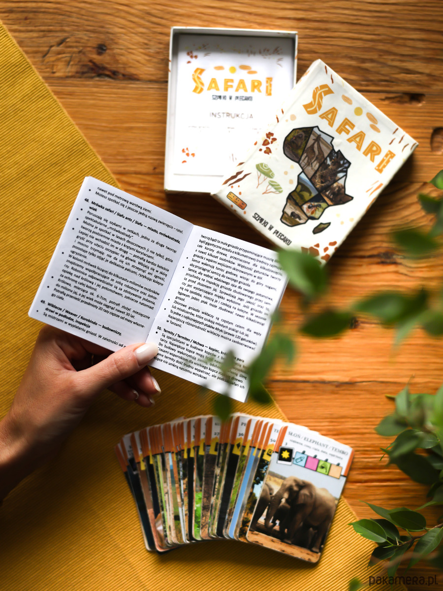 A co powiesz na przeniesienia atmosfery poszukiwań afrykańskiej flory i fauny do stołu w domu w gronie znajomych i najbliższych, by stać się najlepszym fotografem SAFARI? Zadanie jest proste i trudne jednocześnie: musisz zrobić zdjęcia (zebrać karty) najbardziej pożądanych zwierząt w najważniejszych kategoriach jak wielka piątka, mała piątka, brzydka piątka oraz sztandarowe drzewa. Karty SAFARI- zwierzęta Afryki odzwierciedlą klimat prawdziwych poszukiwań w afrykańskim buszu i ekscytację z każdego napotkanego zwierzaka. STAŃ SIĘ NAJLEPSZYM FOTOGRAFEM NA SAFARI!