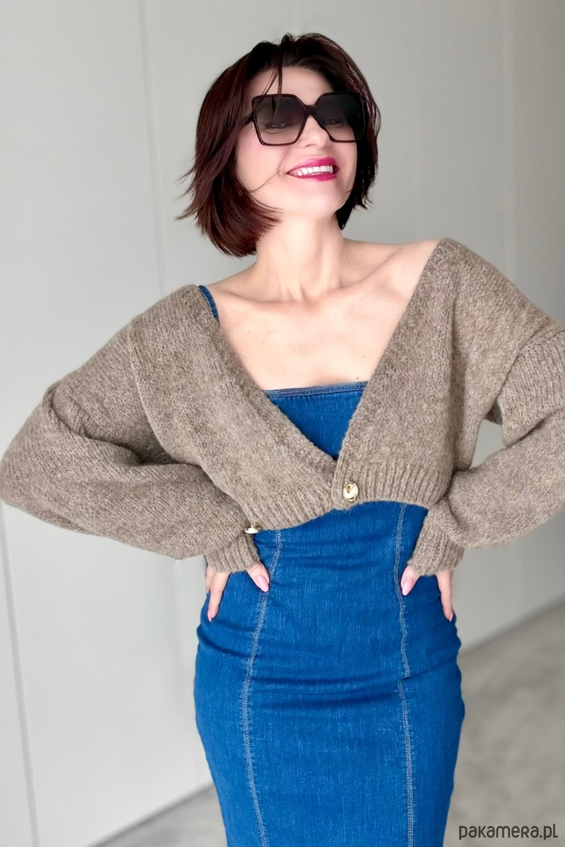 Kardigan, bolerko na dwa guziki, mokka