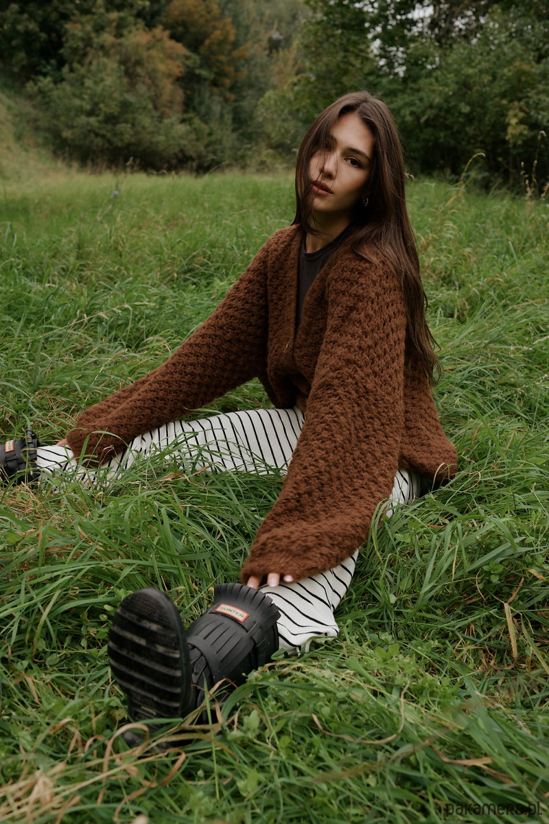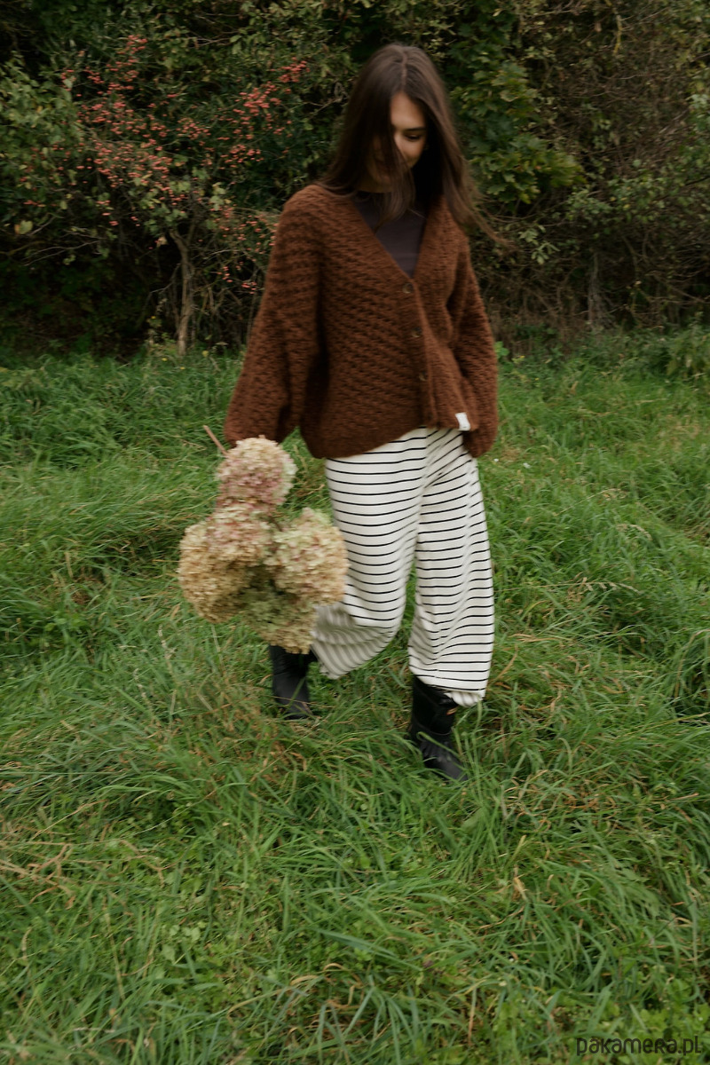 Ten sweter jest do zjedzenia, a to wszystko za sprawą wzoru popcorn! Dzięki temu kardigan jest niezwykle mięsisty i puszysty. Ręcznie robiony na drutach. Napisz w komentarzu do zamówienia, czy sweter ma być: