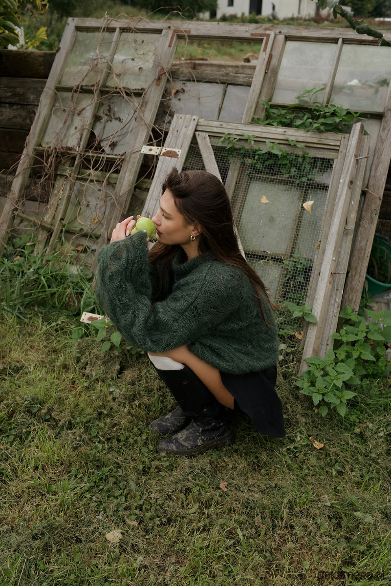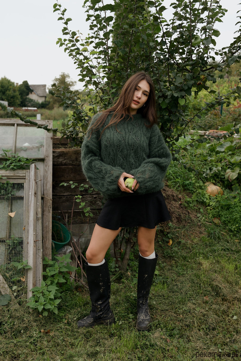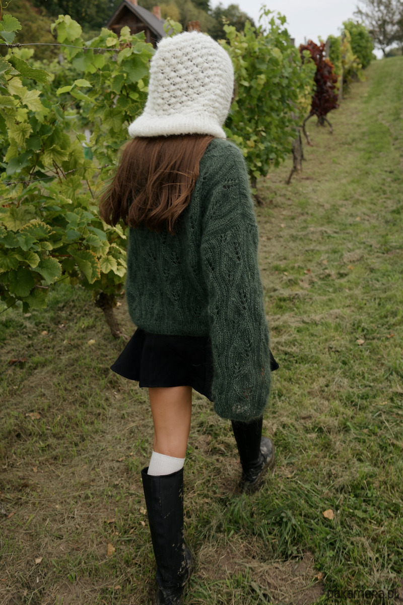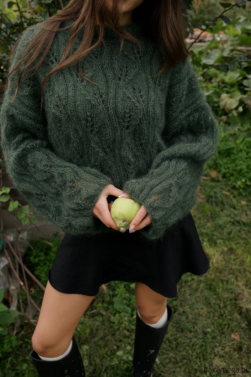 Otul się delikatną, moherową chmurką Daydreamer. Piękny wzór liści na całym swetrze dodaje mu lekkości i uroku, prosty krój i szerokie rękawy, które falują podczas ruchu. Zachwyci Cię jego miękkość i lekkość, będzie to miłość od pierwszego założenia!