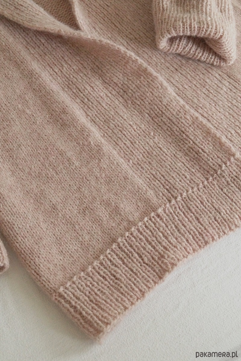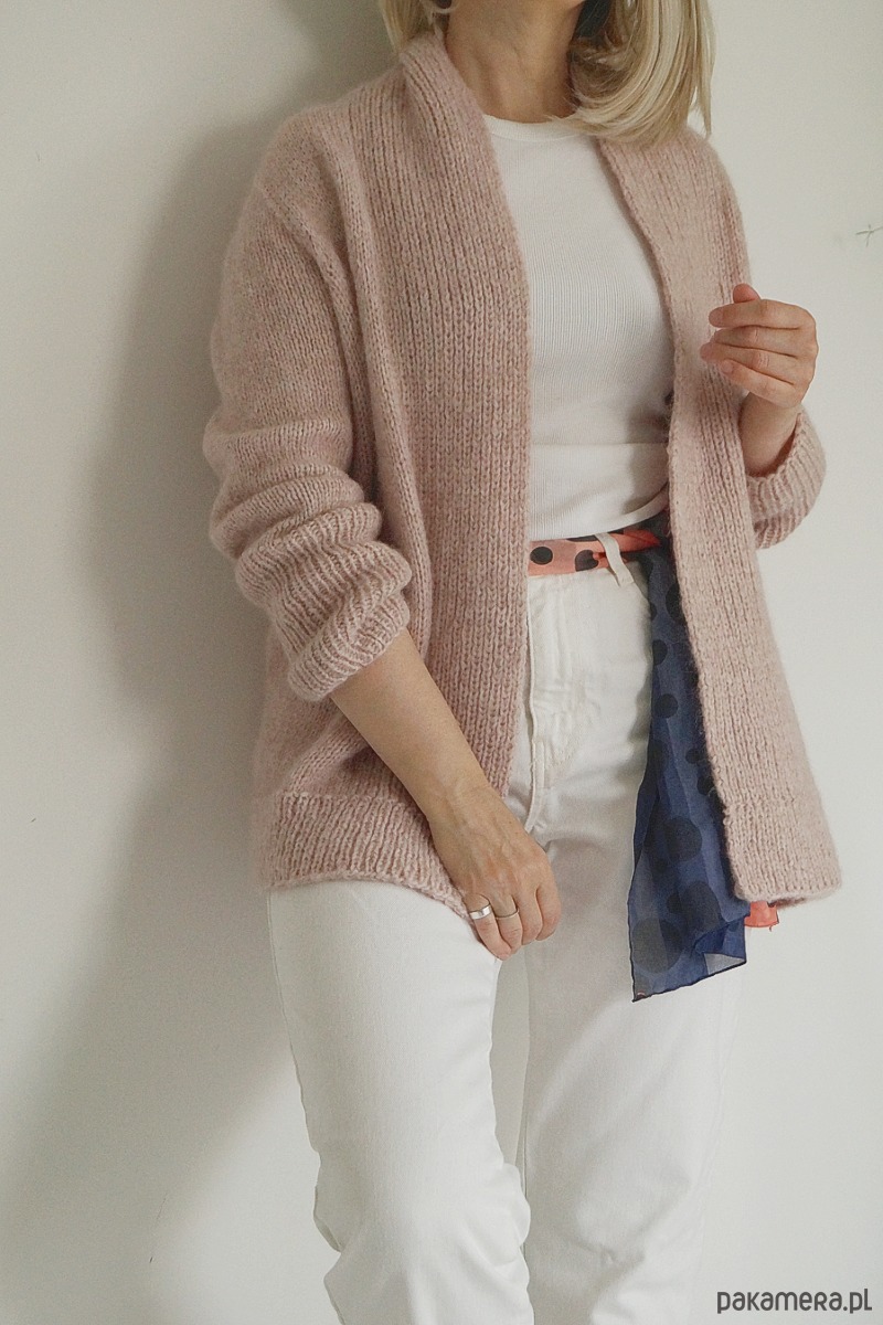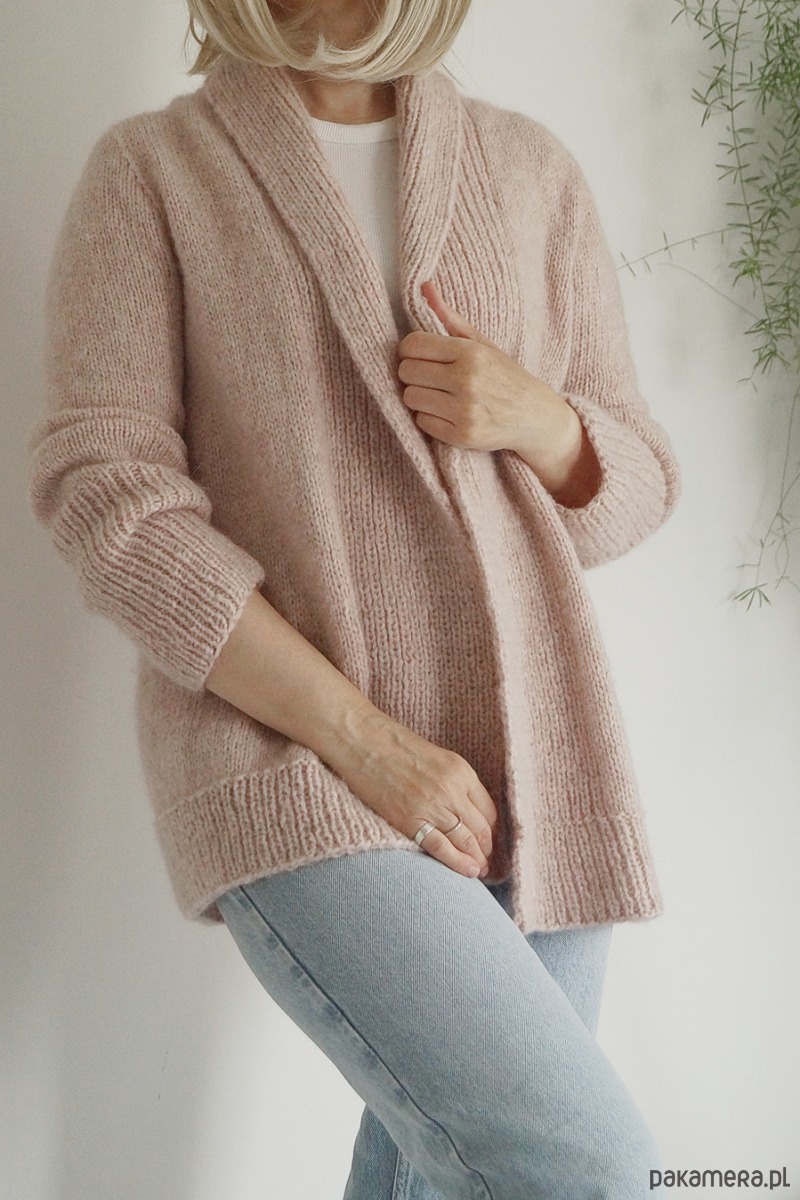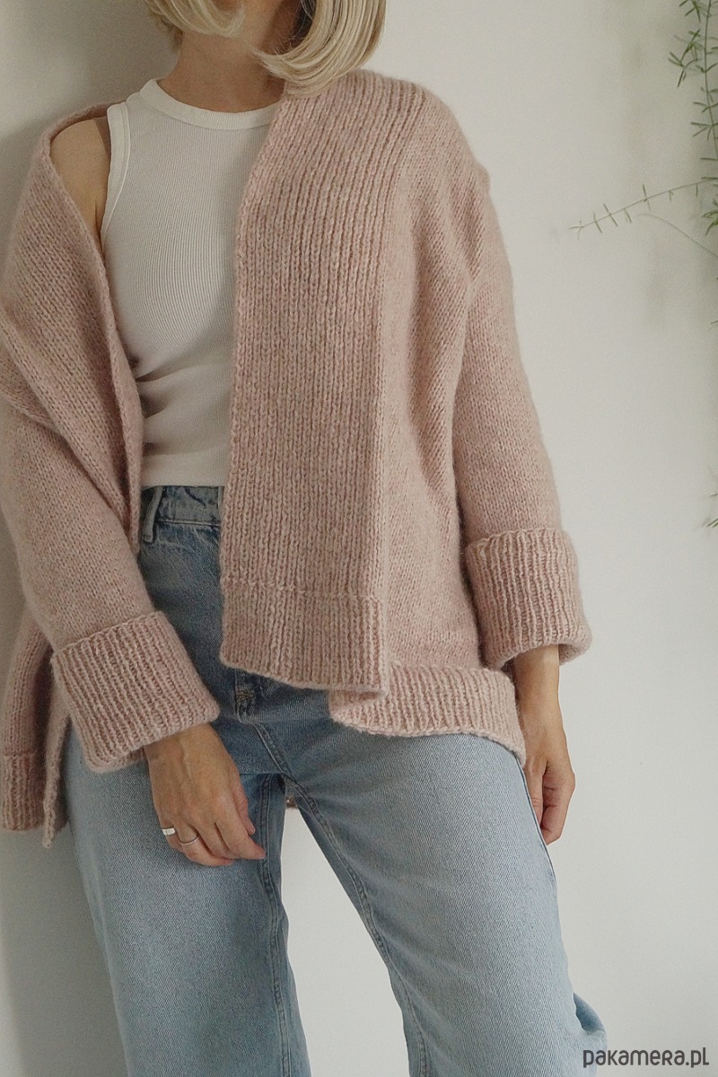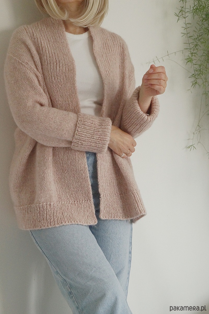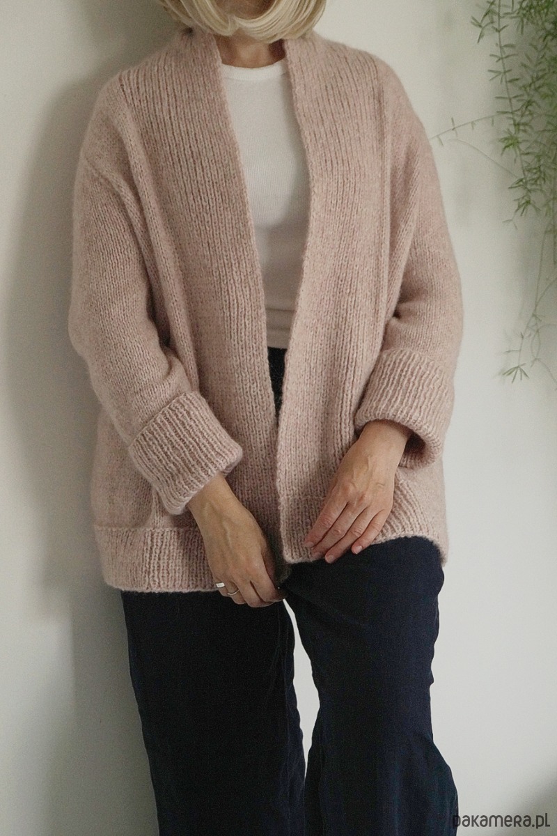 Kardigan wykonany ręcznie z włóczki z dużą zawartością alpaki.