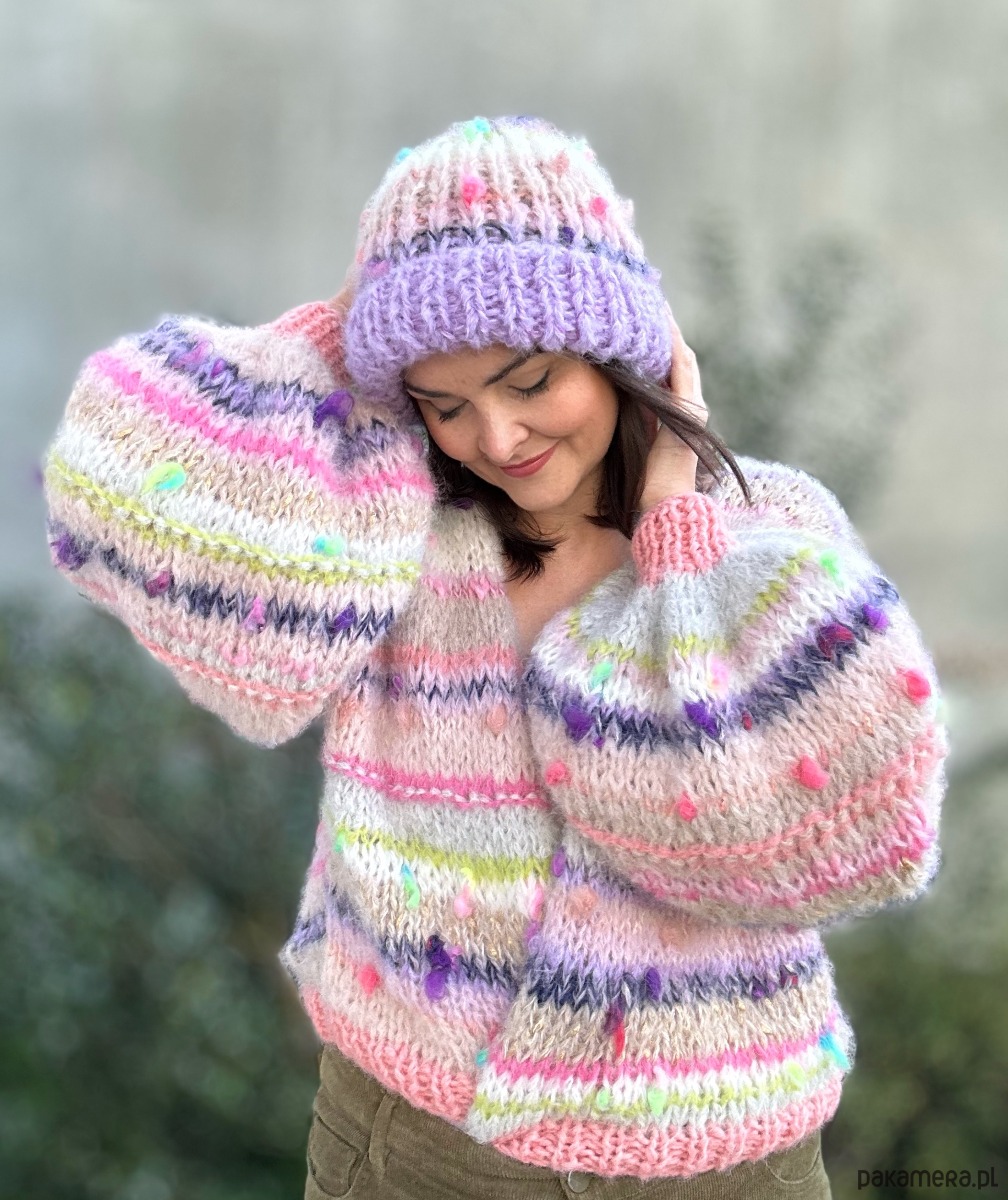 Ten kardigan to unikat, co oznacza, że nie powstanie identyczny.
