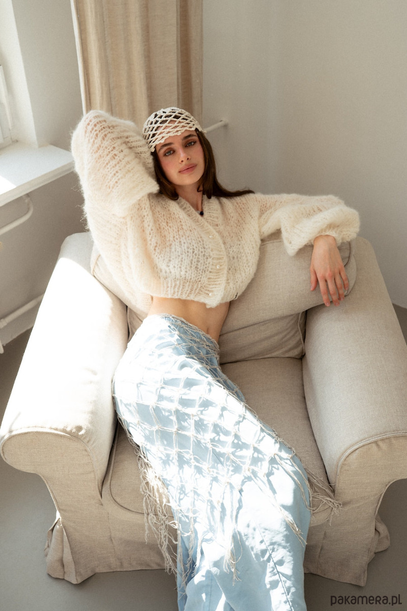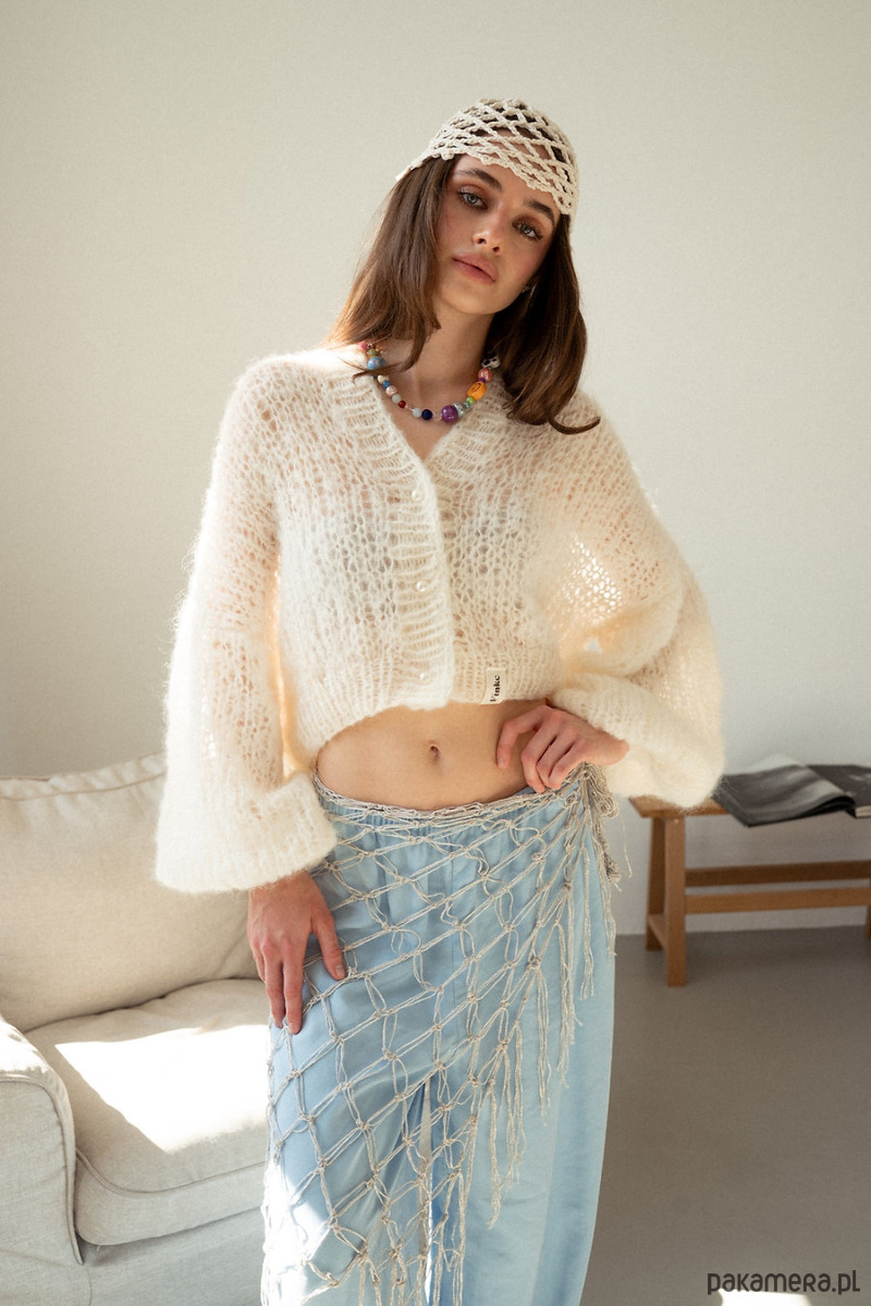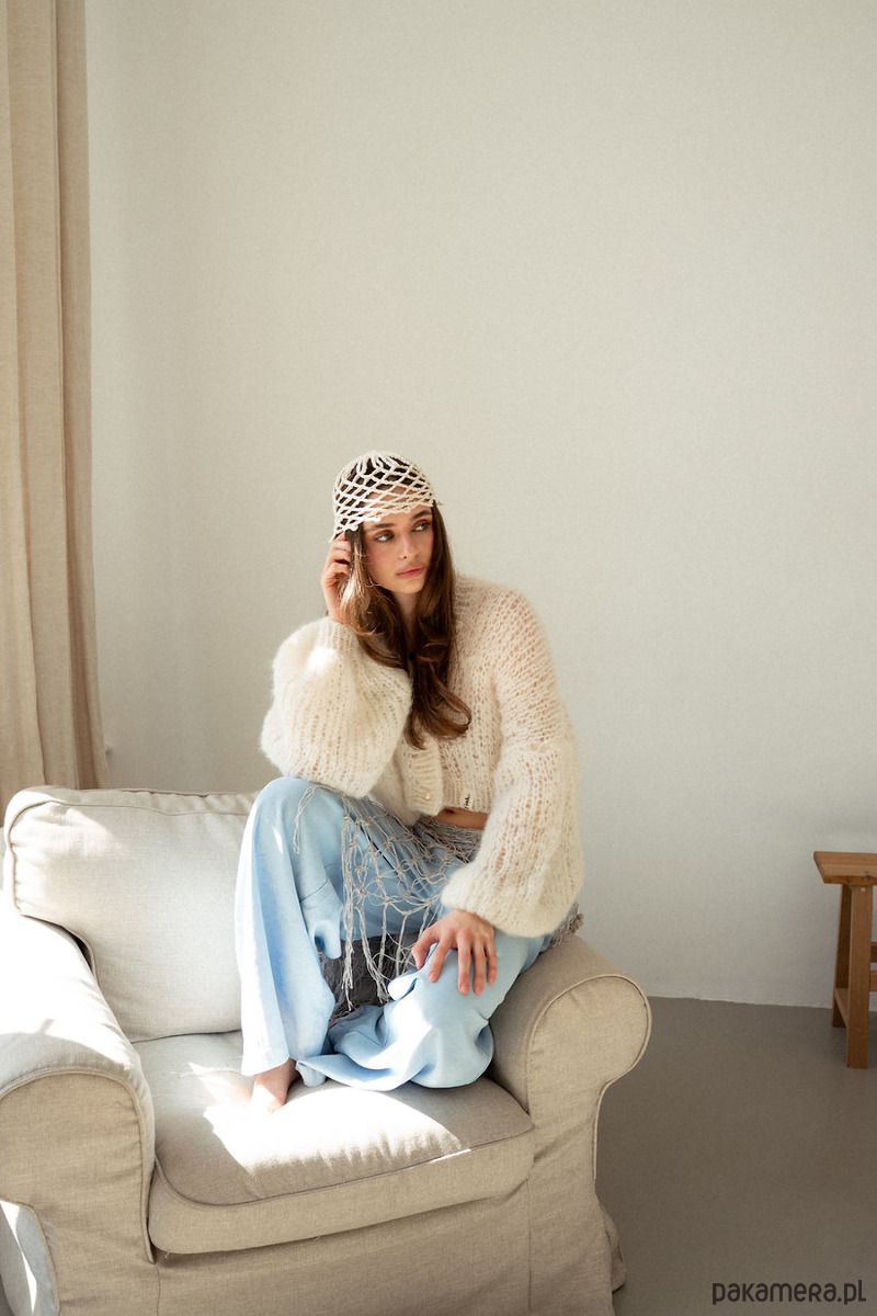 Kardigan Pure to delikatny sweter o luźnym splocie, dający lekki prześwit. Szerokie i bufiaste rękawy robią efekt WOW! Ściągacze lekko odróżniają się od całości swetra poprzez gęstszą strukturę co daje piękny i niepowtarzalny efekt. Zapinany na okrągłe, perłowe guziki.