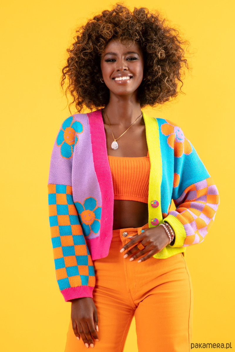 Bawełniany krótki kardigan w kwiaty w kolorze NIEBIESKIM.
