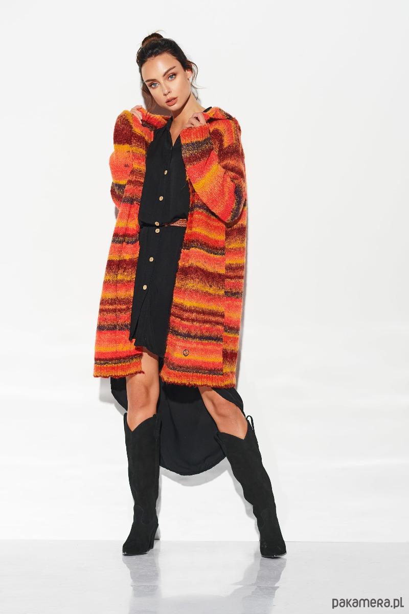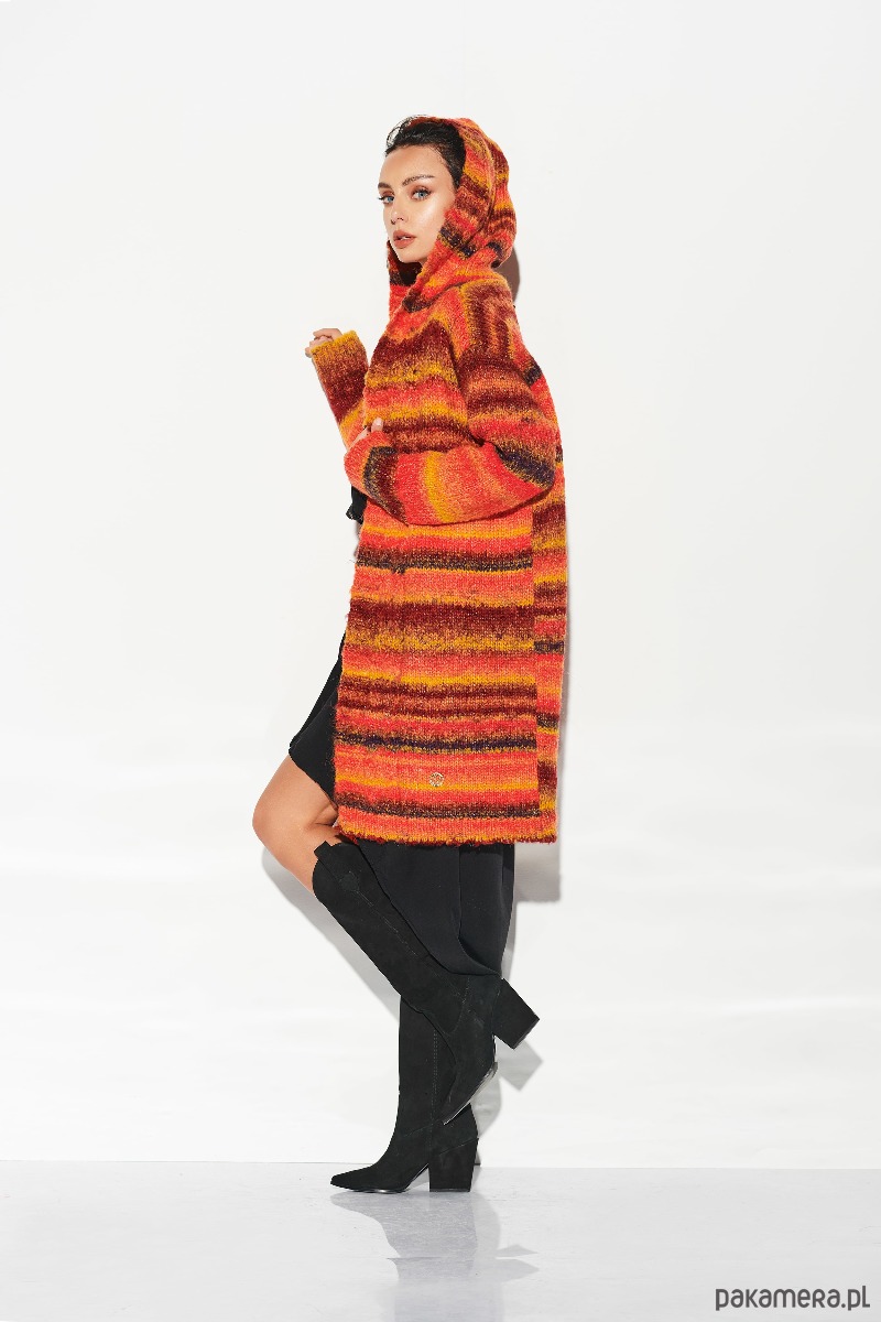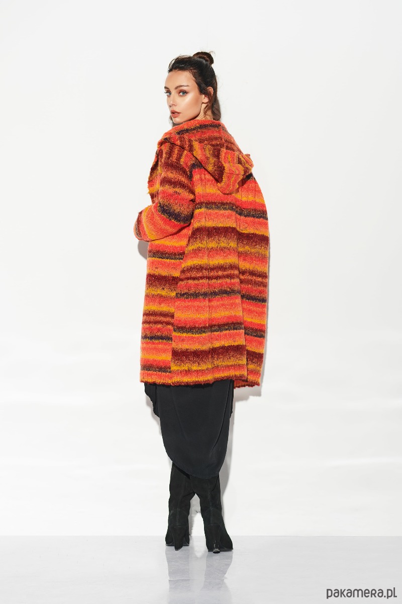 Kardigan z kapturem w paski LSG103 - rudy