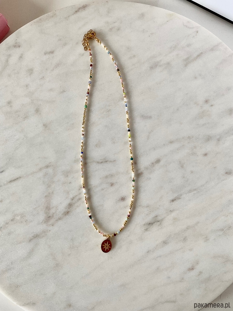 Naszyjnik jest elegancki i pięknie się mieni. W centrum jest medalik z gwiazdką.