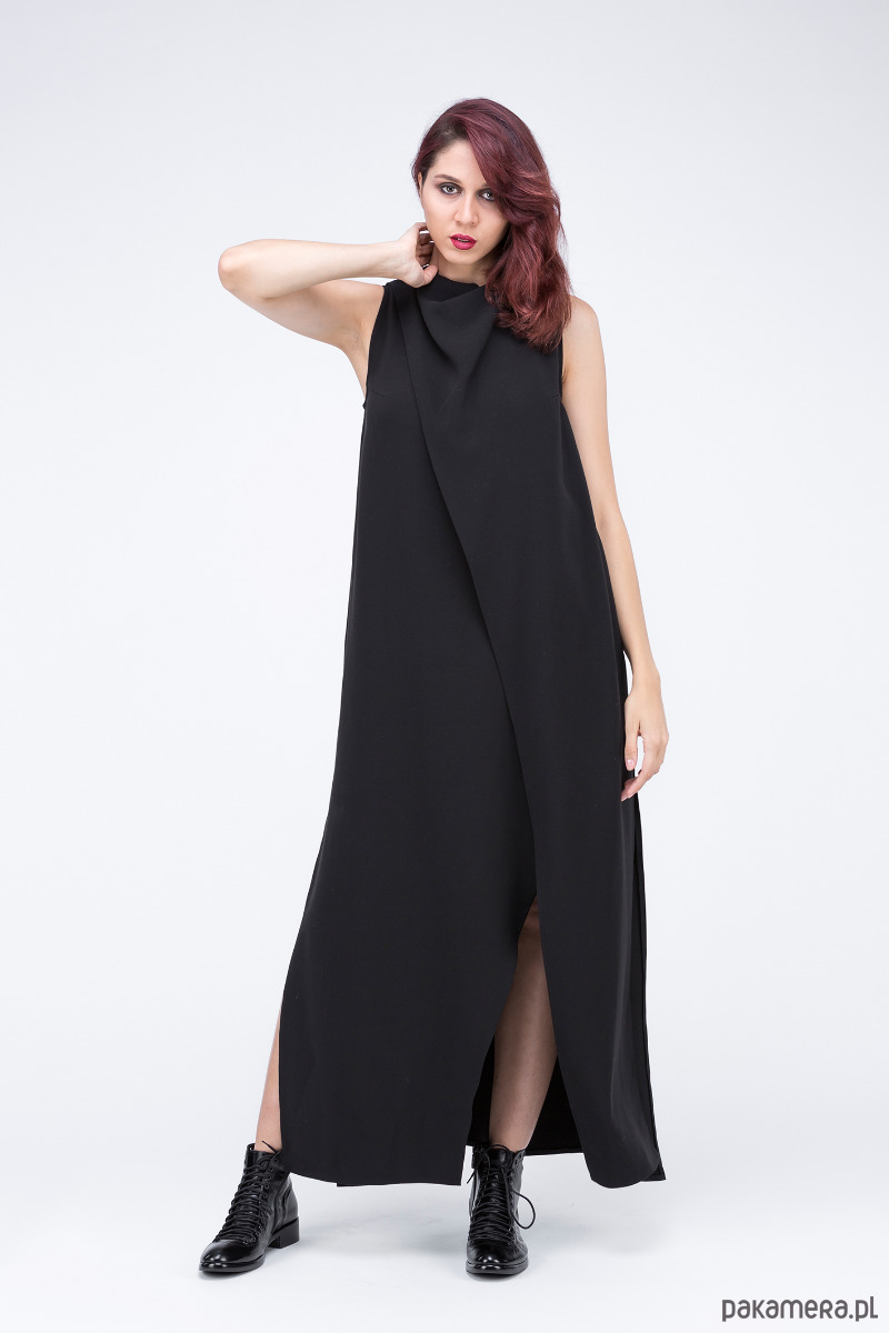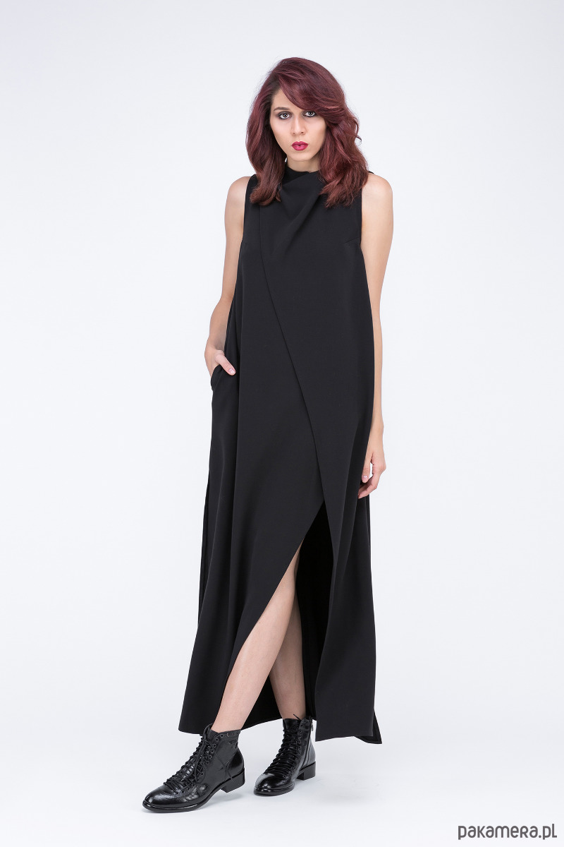 sukiena z kolekcji "Times up", swobodna i elegancka, uszyta z tkaniny wiskozowej, kopertowa, dekolt zewnętrzny "woda", rozcięcia w szwach bocznych,
