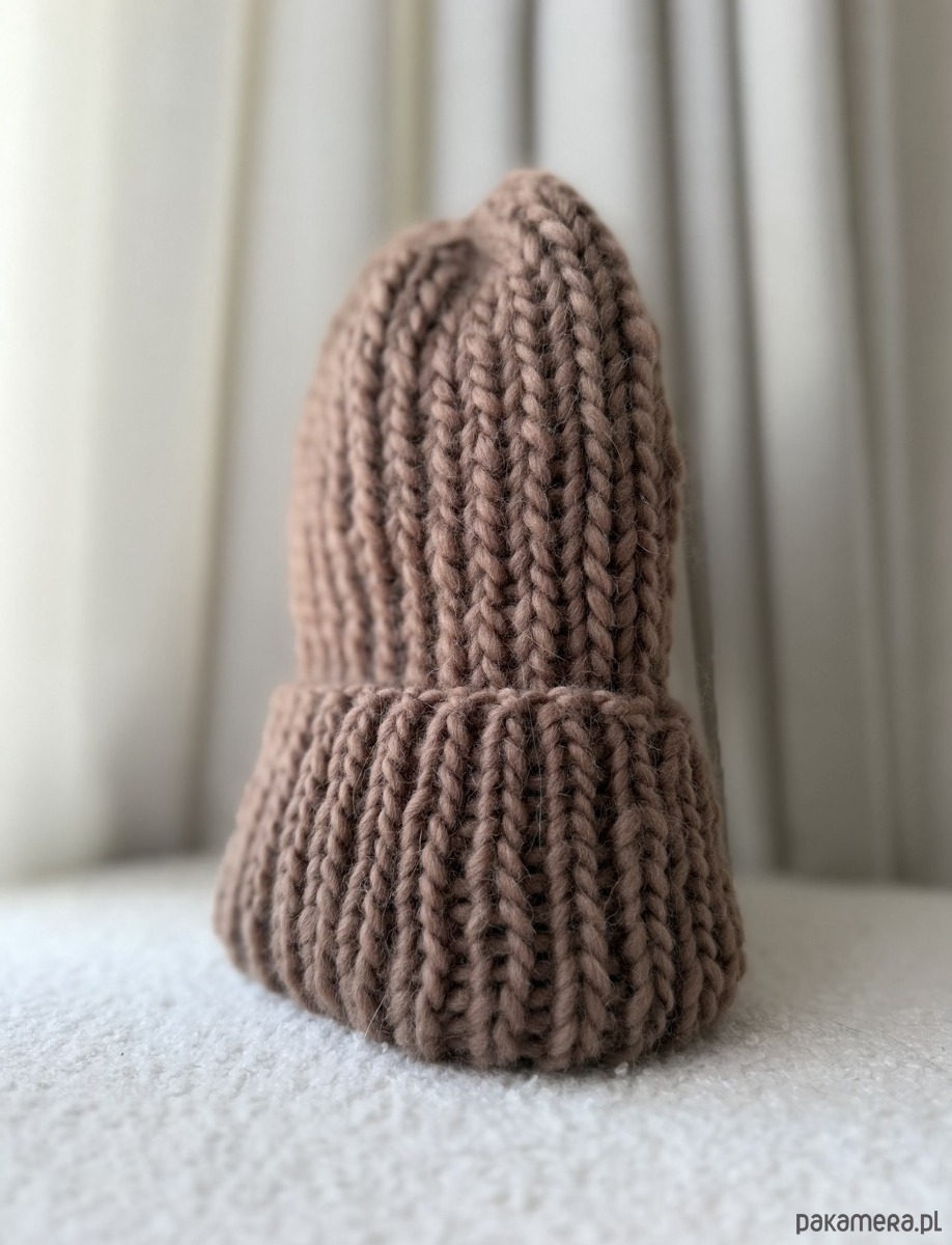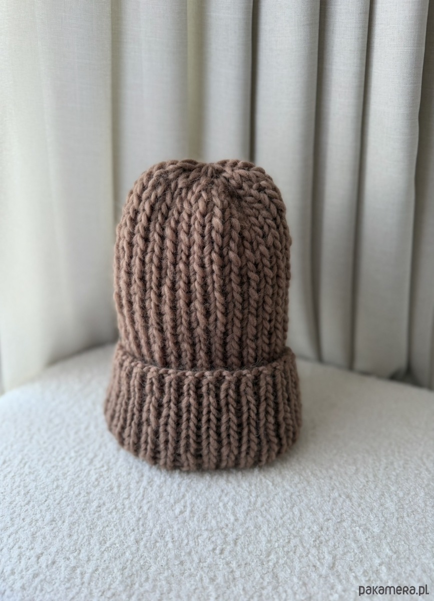 Czapka w kolorze karmelowym, wykonana z naturalnej włóczki 100% wełna