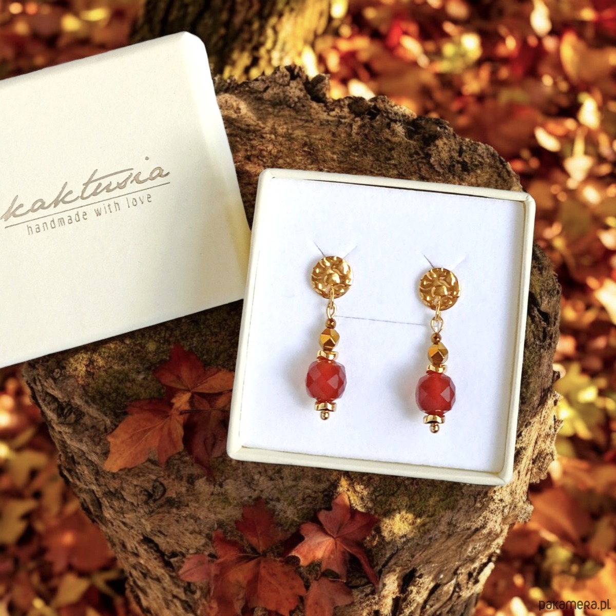Karneol : kolczyki krótkie : ozdobne sztyfty