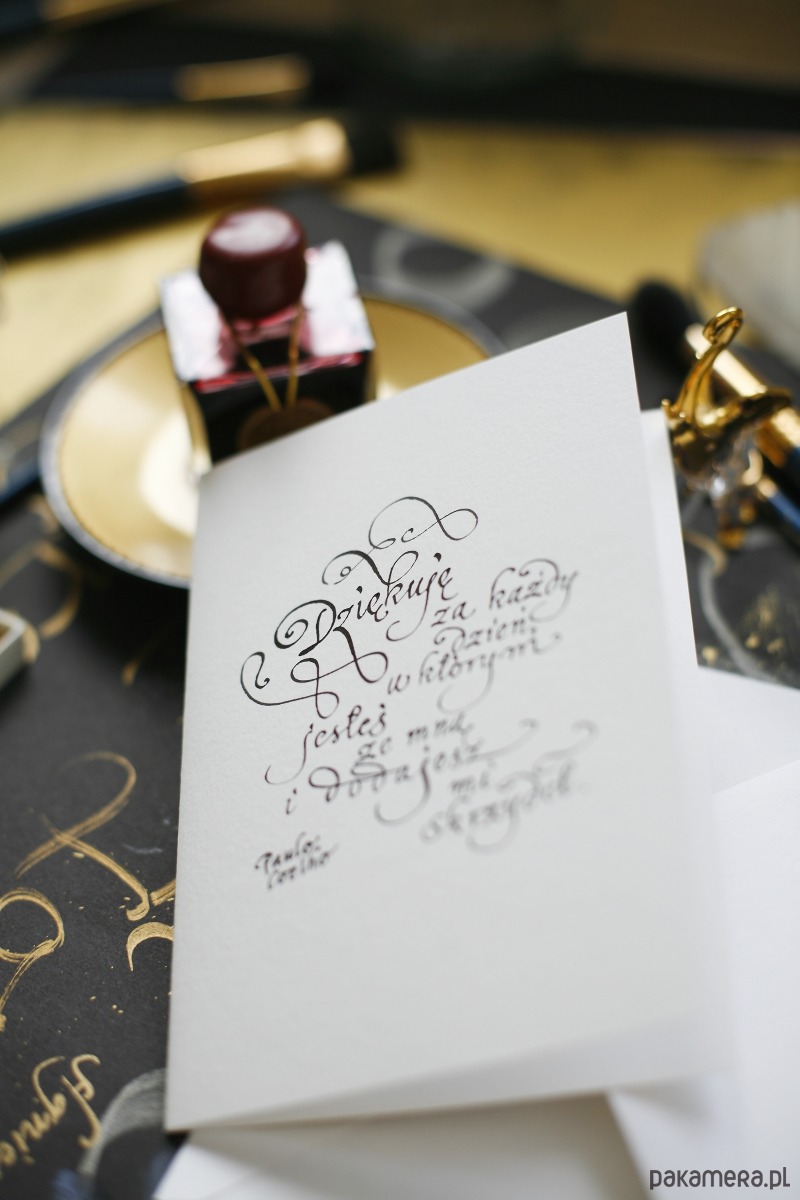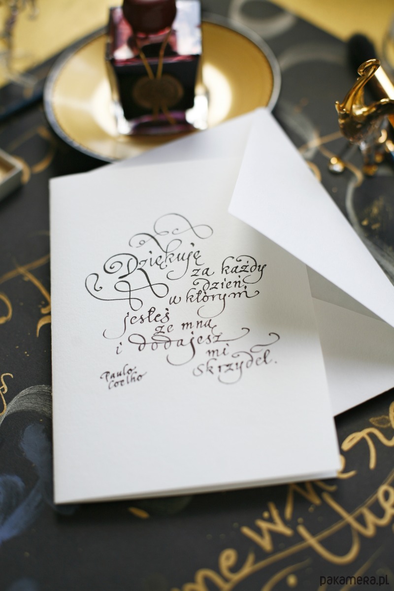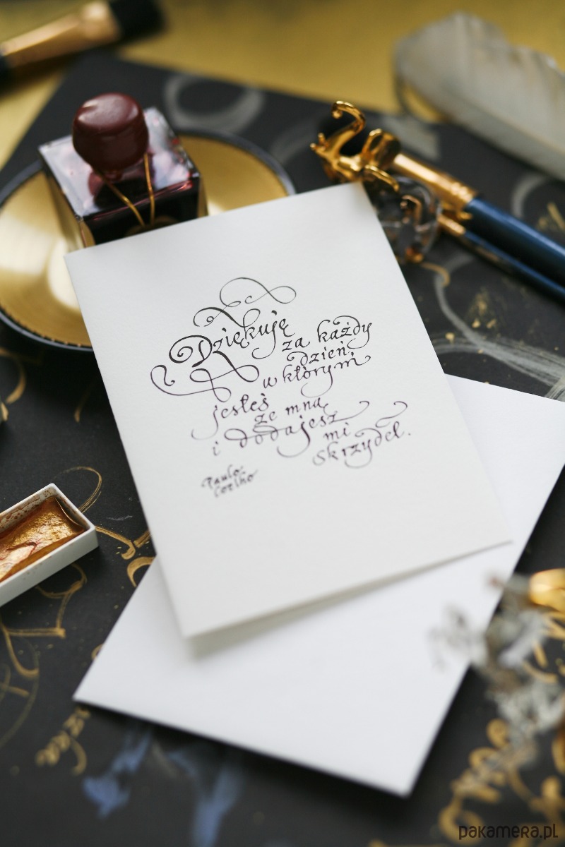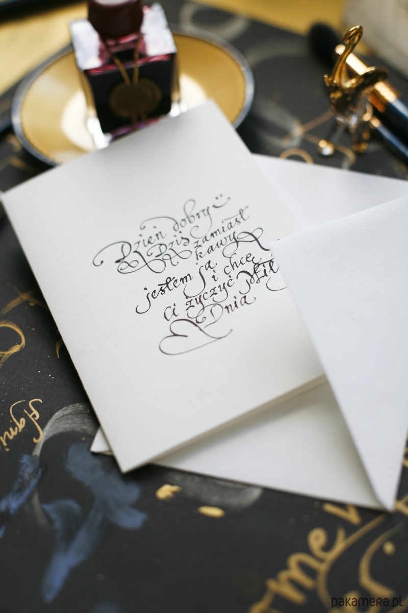 Personalizowana kartka z życzeniami kaligrafowana ręcznie atramentem