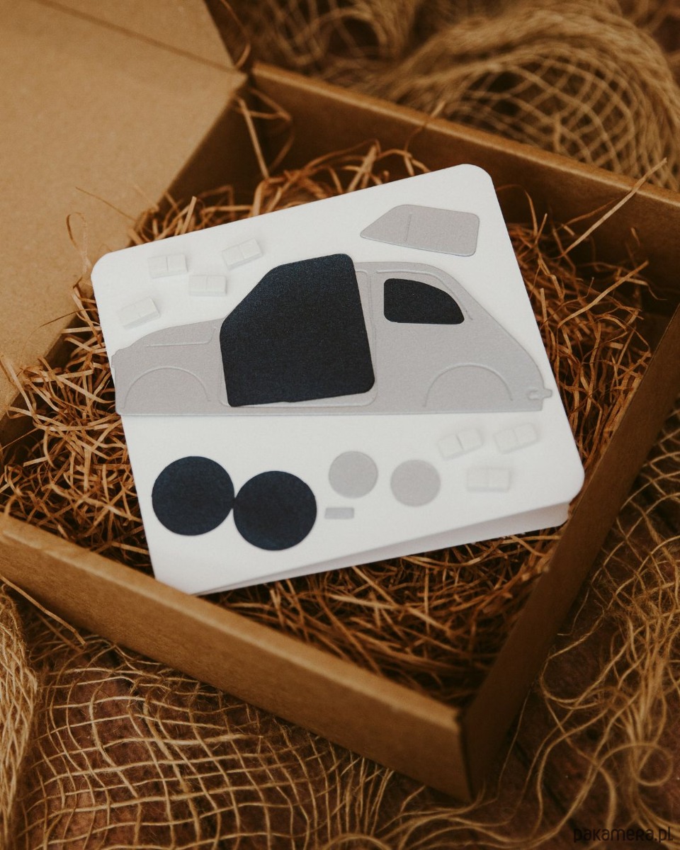 • W środku znajdziesz wytłoczone elementy scrapbooking, które następnie przyklejasz na kartkę;