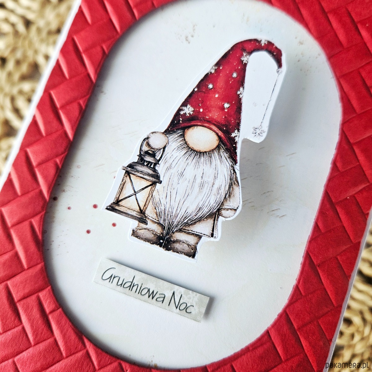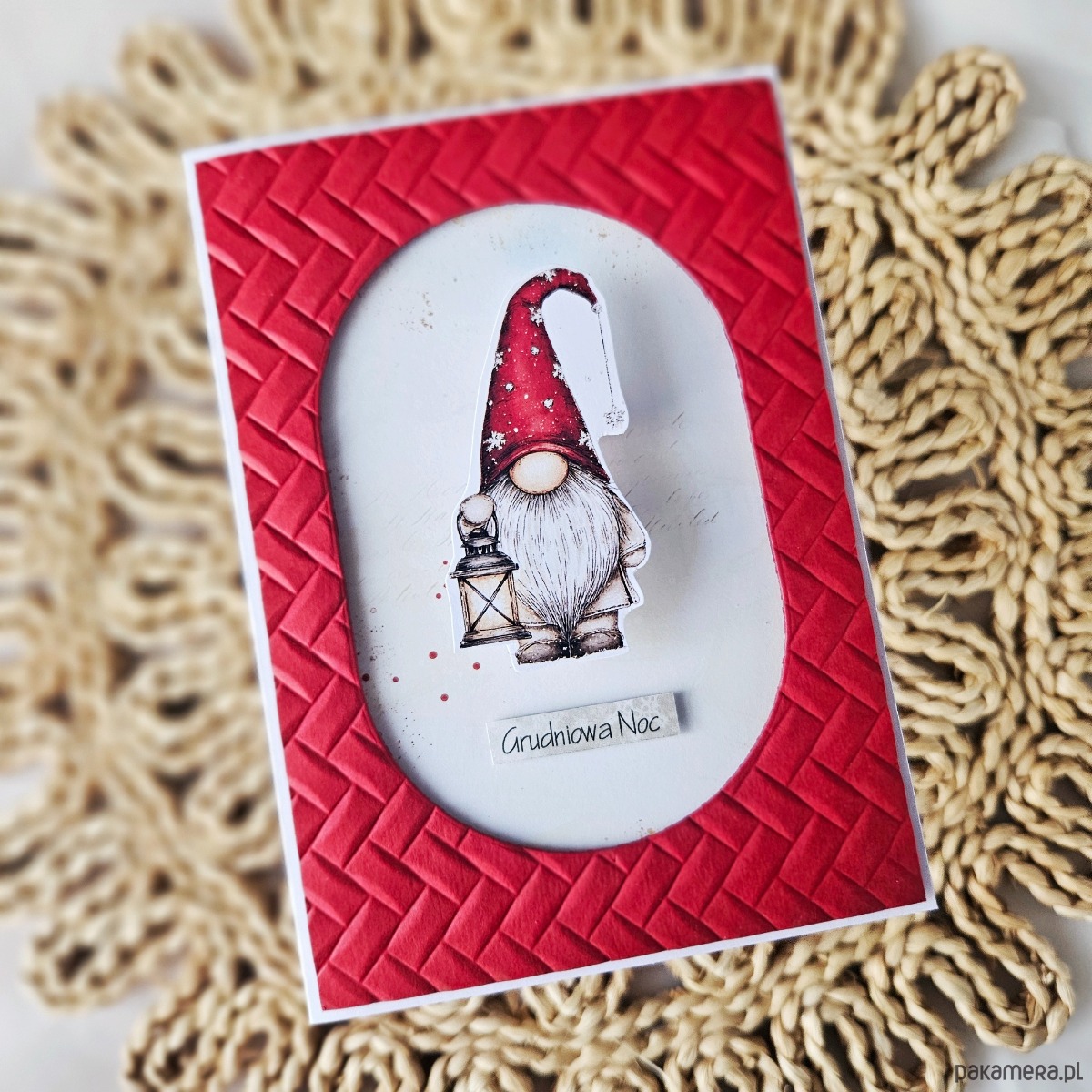 Kartka bożonarodzeniowa z gnomem na dystansie