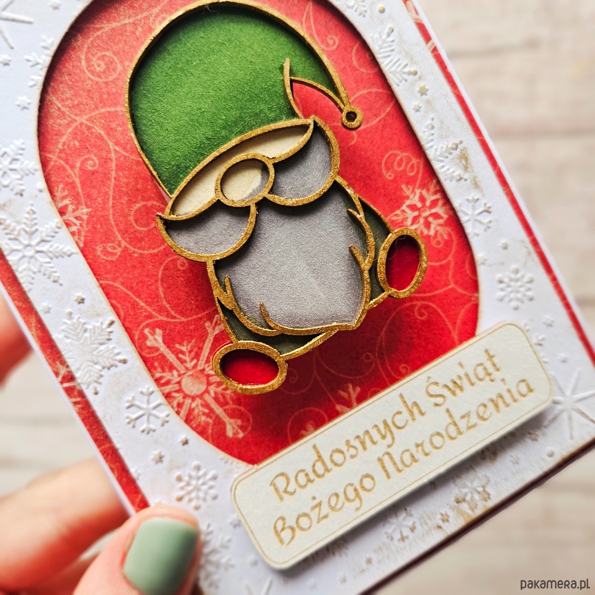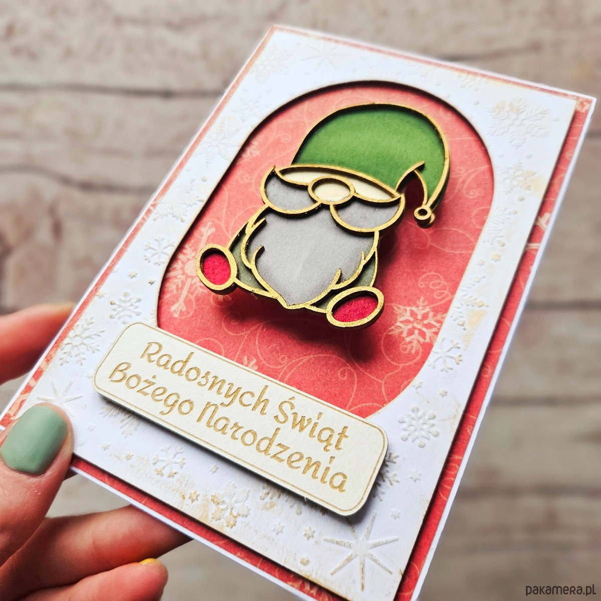Kartka bożonarodzeniowa z gnomem na sprężynie