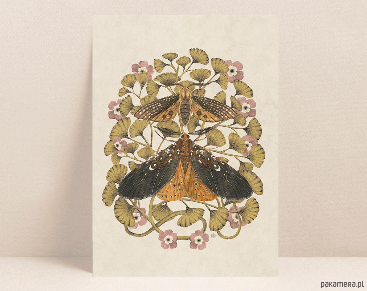 Kartka ćmy, kartka okolicznościowa, pocztówka kwiaty, karta botaniczna