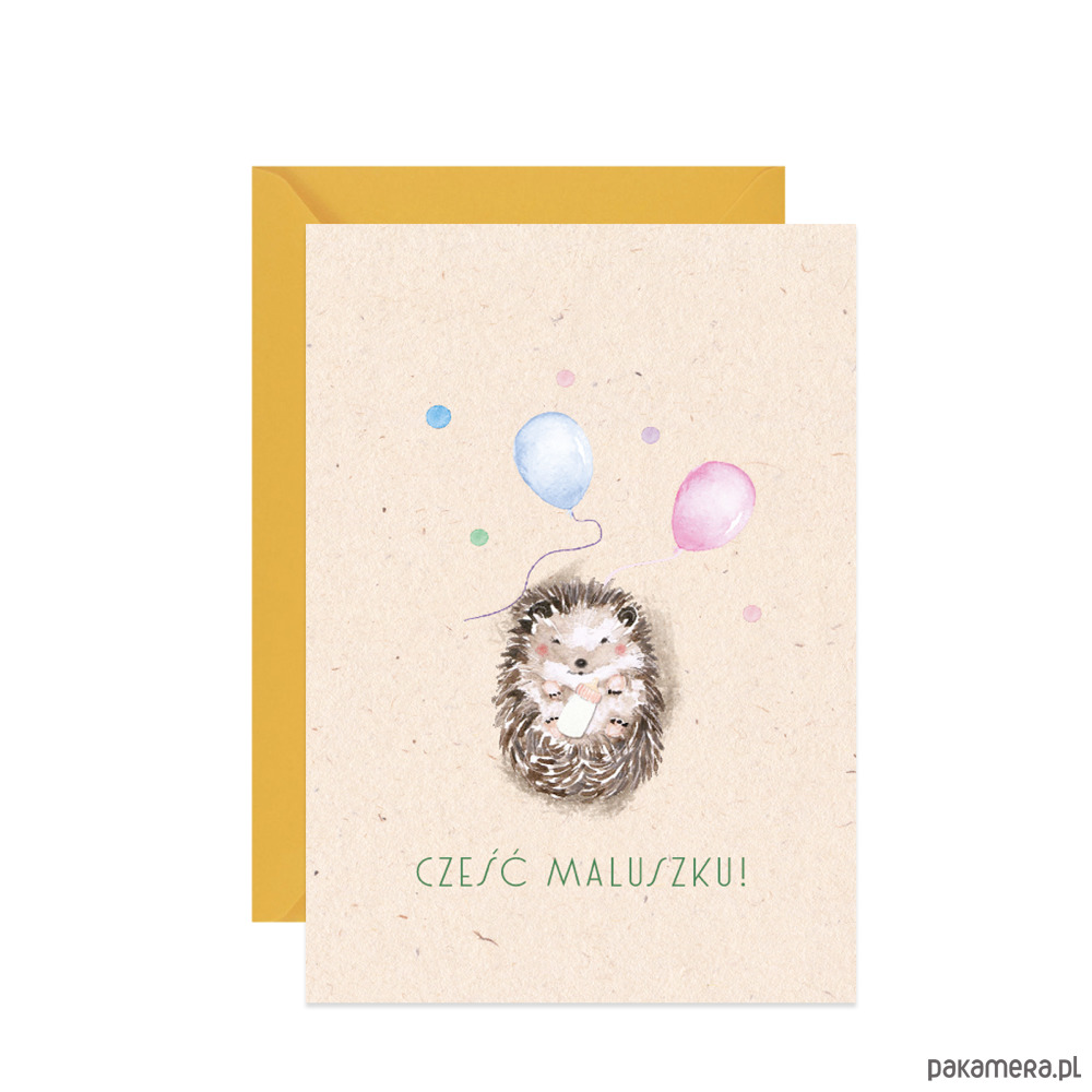 Kartka z życzeniami dla Maluszka, z reprodukcją ręcznie malowanej ilustracji akwarelowej - Jeżyka. Będzie miłym dodatkiem do upominku z okazji narodzin dziecka, chrztu lub sprawi radość bliskim w skrzynce pocztowej obok sterty rachunków.