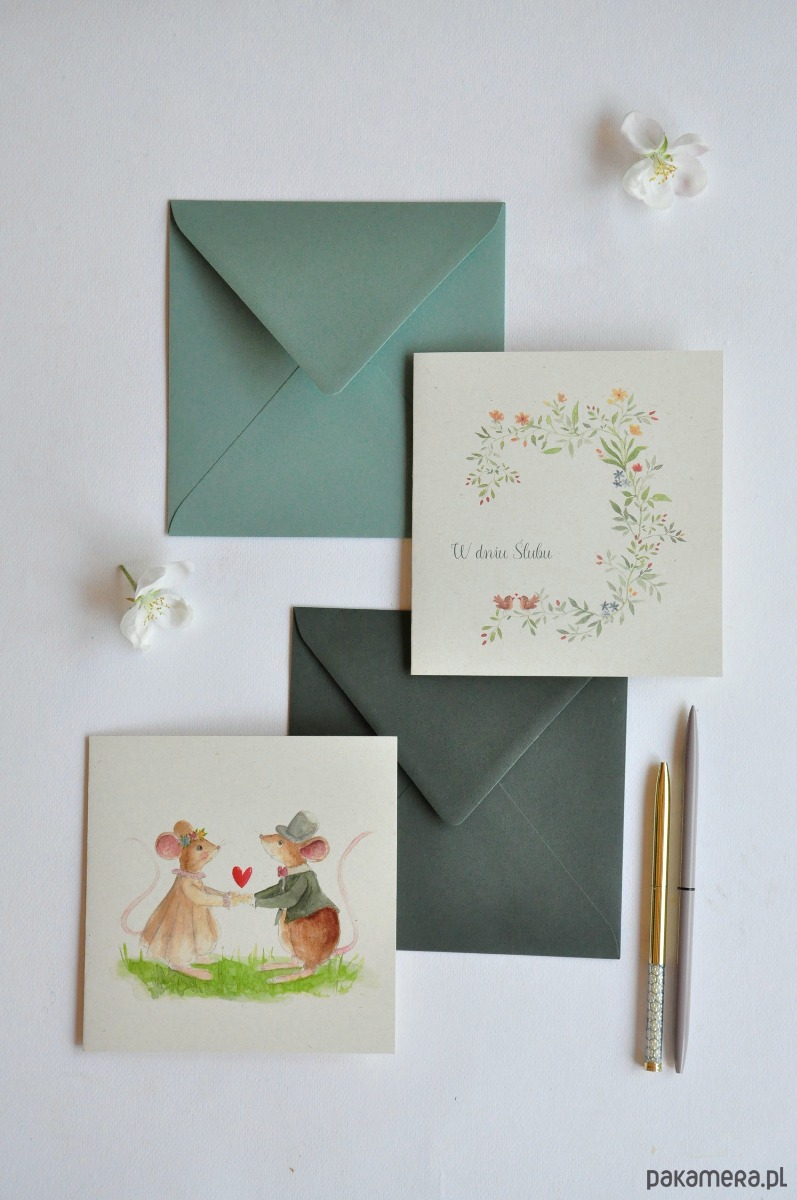 wymiar 14x14cm, z koperta eko lub butelkowa zieleń