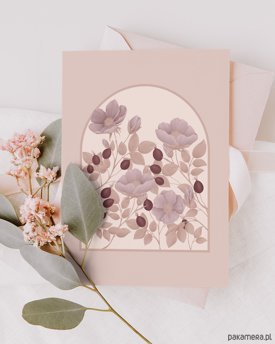 Rozmiar do wyboru: pocztówka (kartka jednostronna) a6 lub a5 albo kartka składana a6, z pustym miejscem w środku na życzenia.