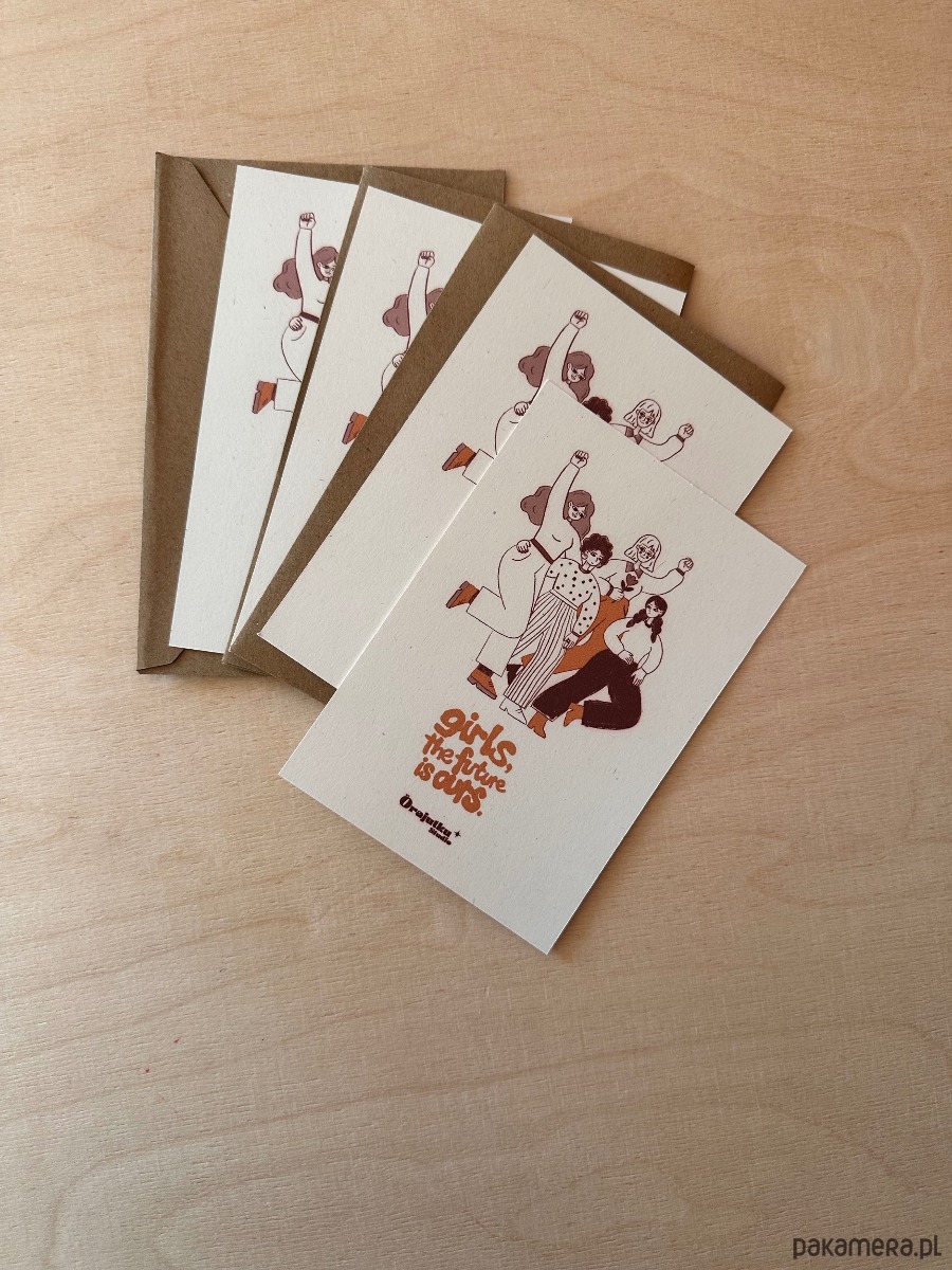 Kartka jest drukowana na papierach customowych, co sprawia, że jedna kartka może ciut różnic się od drugiej.