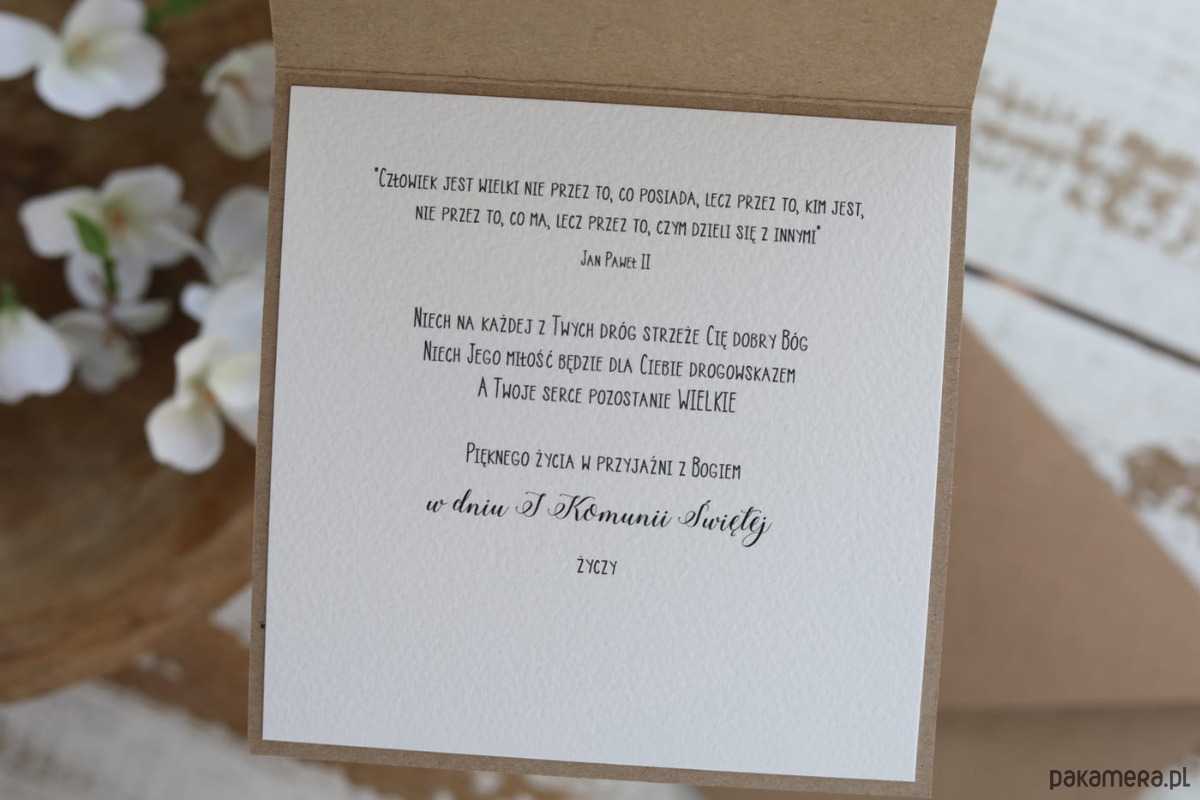 Ta kartka to nie tylko kartka. To przejaw bliskości, miłości i dbałości. To wyraz ważności kogoś w naszym życiu. To możliwość stworzenia unikatowego prezentu, który będzie wyrazem emocji oraz podkreśli wyjątkowość dziecka, które przyjmuje Komunię.