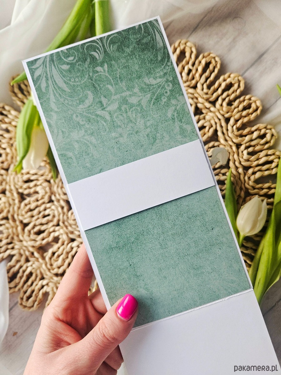 W środku miejsce na życzenia. Mogę przesłać ci propozycje do wyboru, wydrukować i wkleić twoje życzenia lub pozostawić miejsce puste do samodzielnego uzupełnienia.