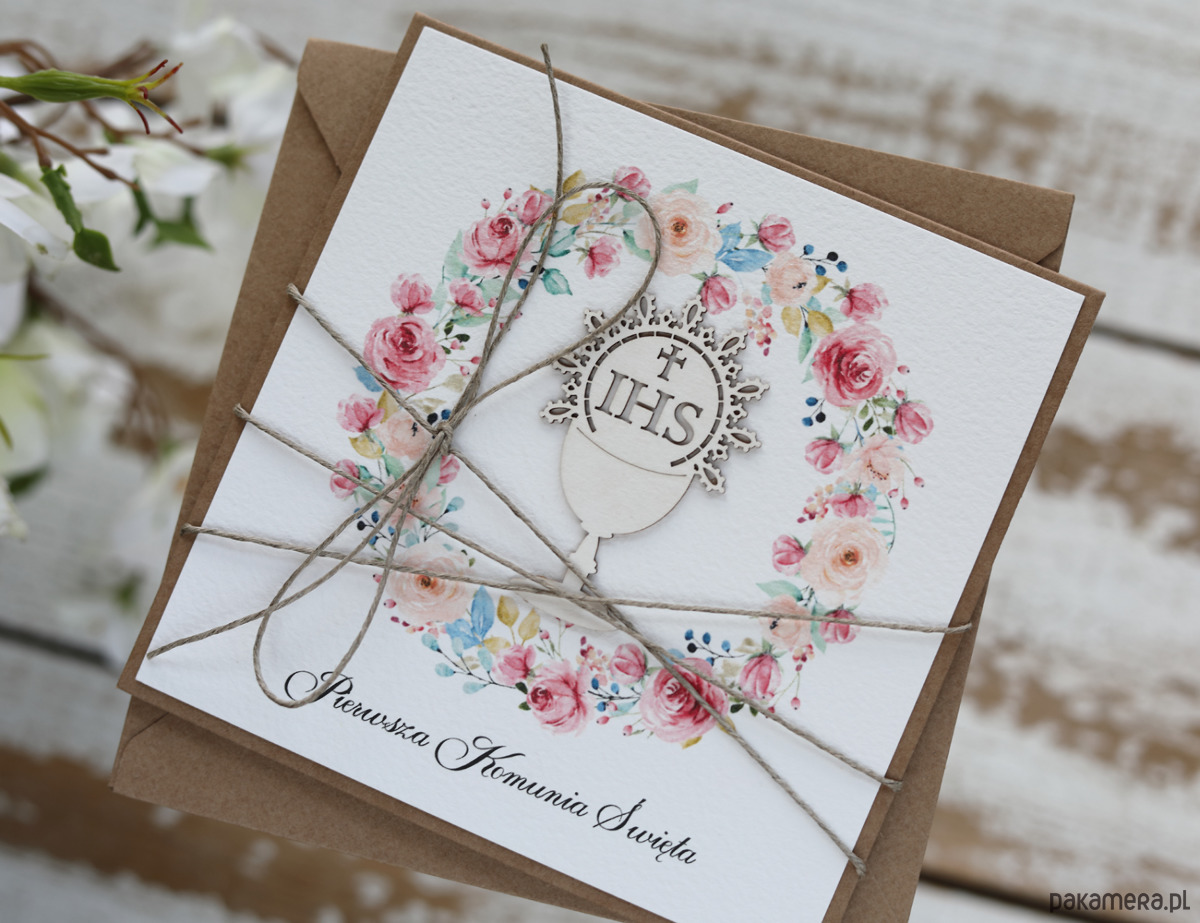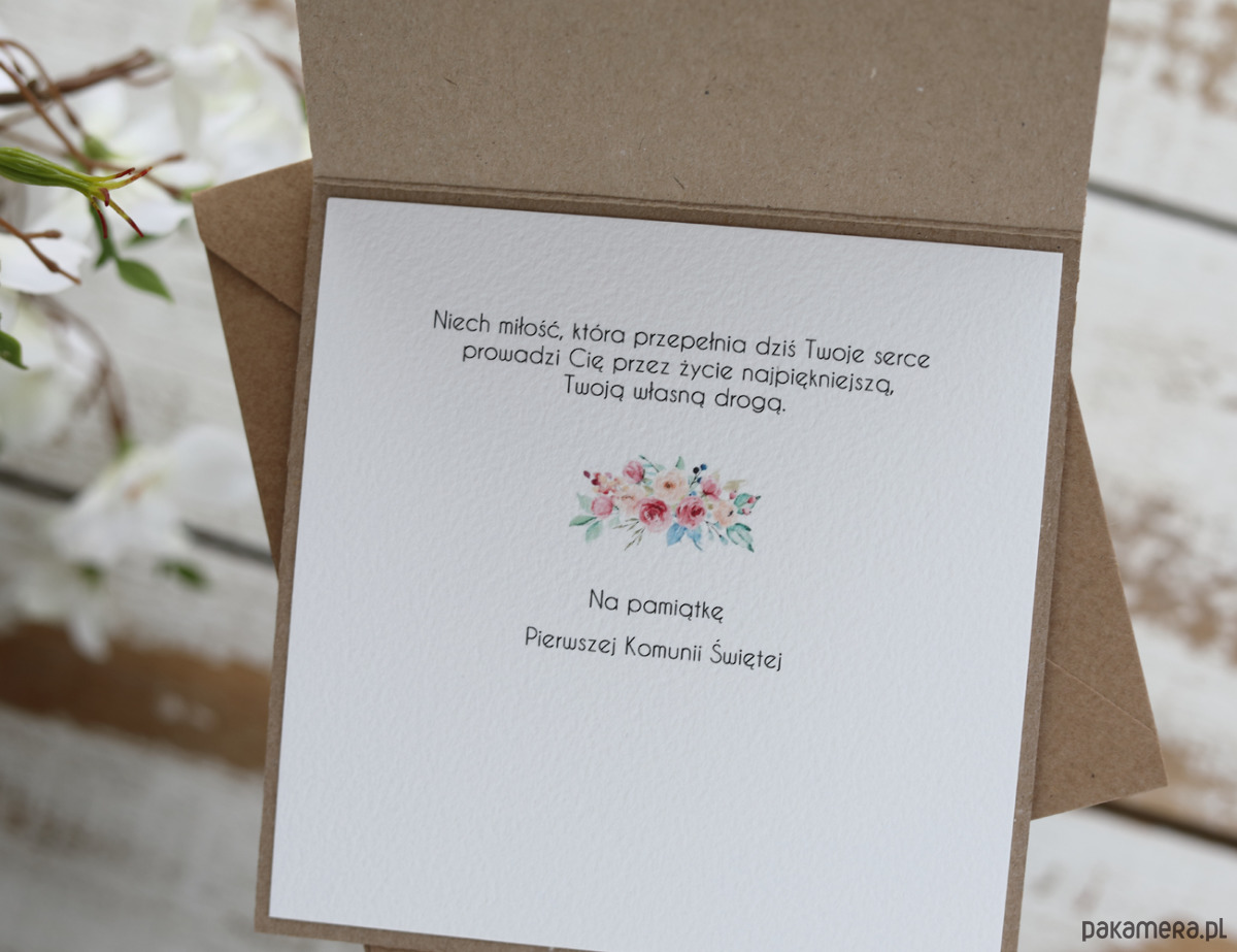 Stylowa, elegancka, wyjątkowa i oryginalna kartka komunijna wykonana z najwyższej jakości materiałów.