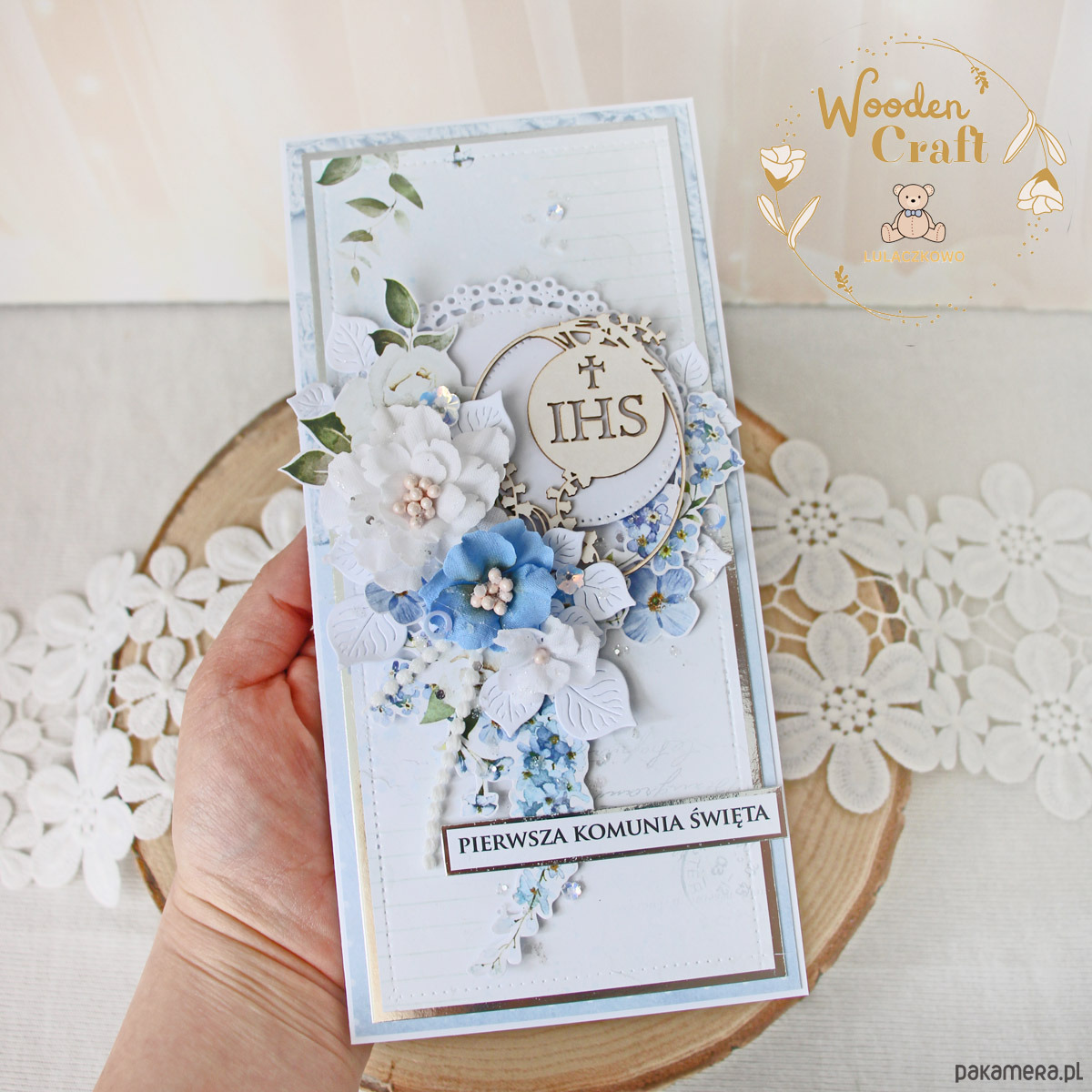 Kartka komunijna, Pamiątka Komunii, prezent "Lovely Day in Blue 1"GOTOWA