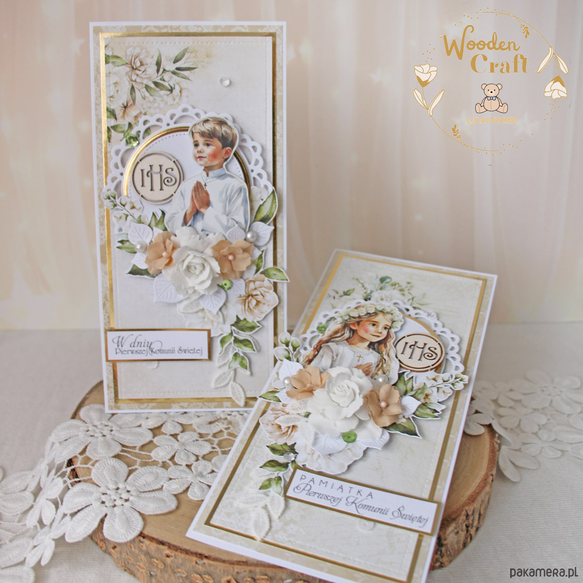 Kartka komunijna pamiątka pierwszej komunii świętej "Beige Story" GOTOWA