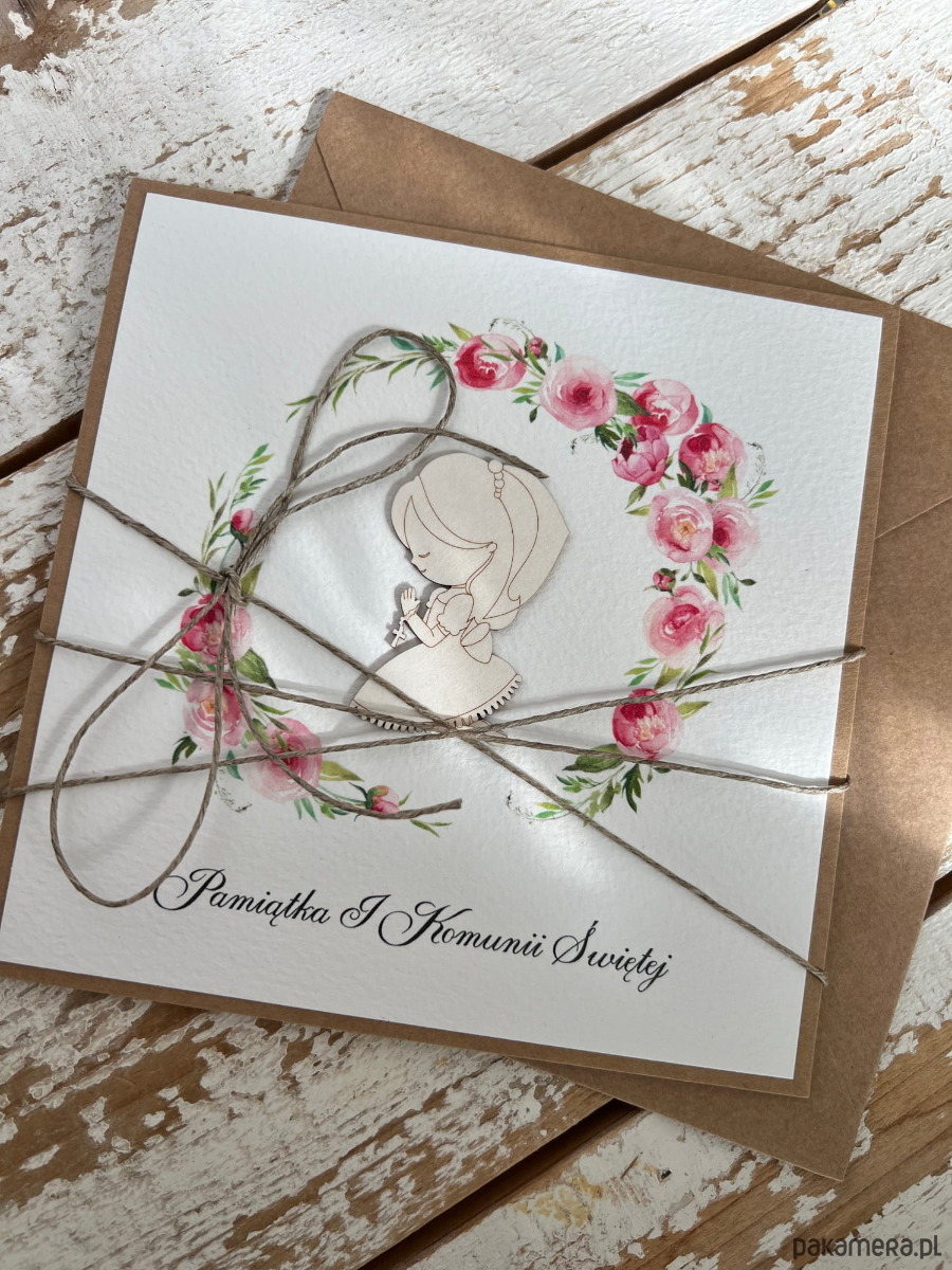 Kartka na komunię - pamiątka komunii ręcznie robiona Prezent