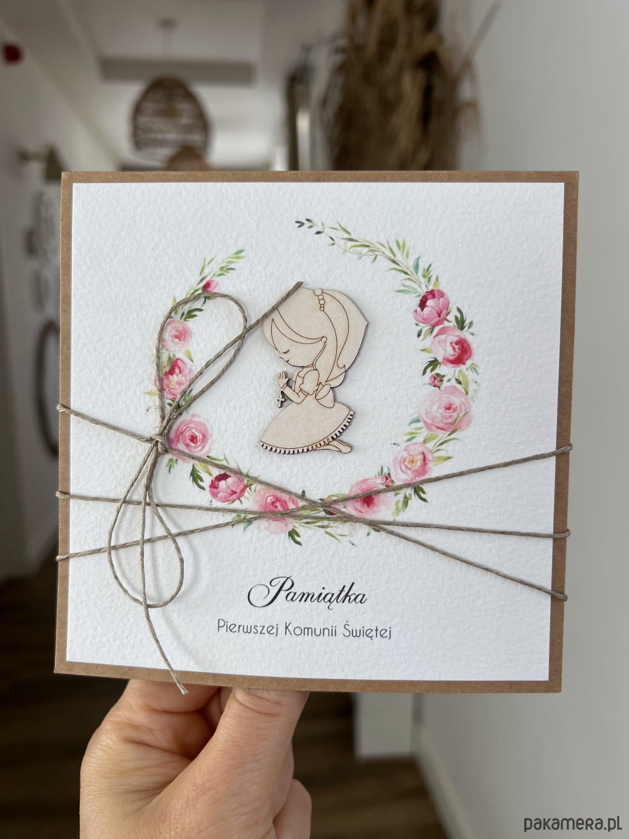 Kartka komunijna ręcznie robiona - Pierwsza Komunia Święta piękne życzenia dla dziewczynki