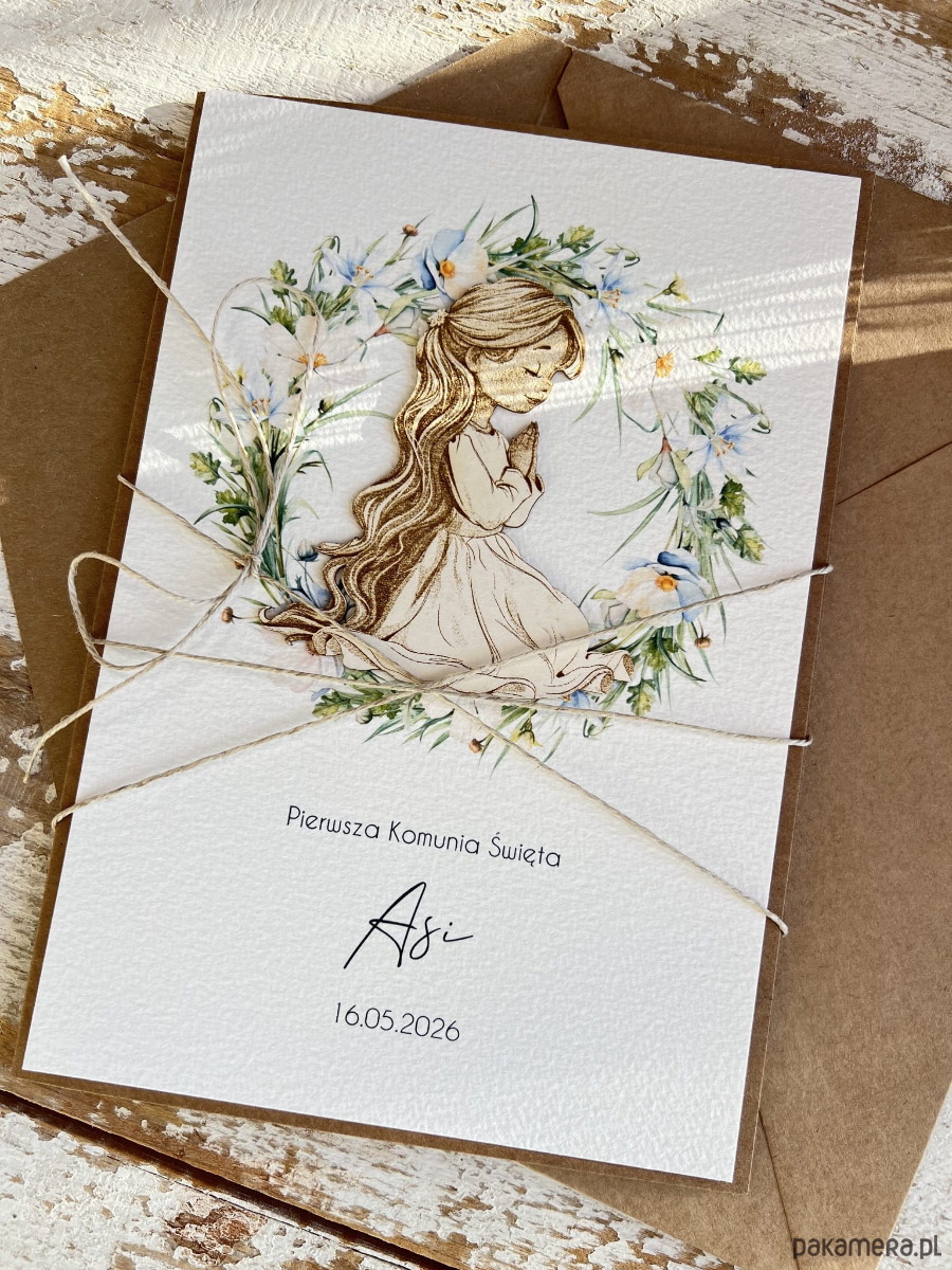 Kartka komunijna ręcznie robiona z imieniem od matki chrzestnej A5 duża