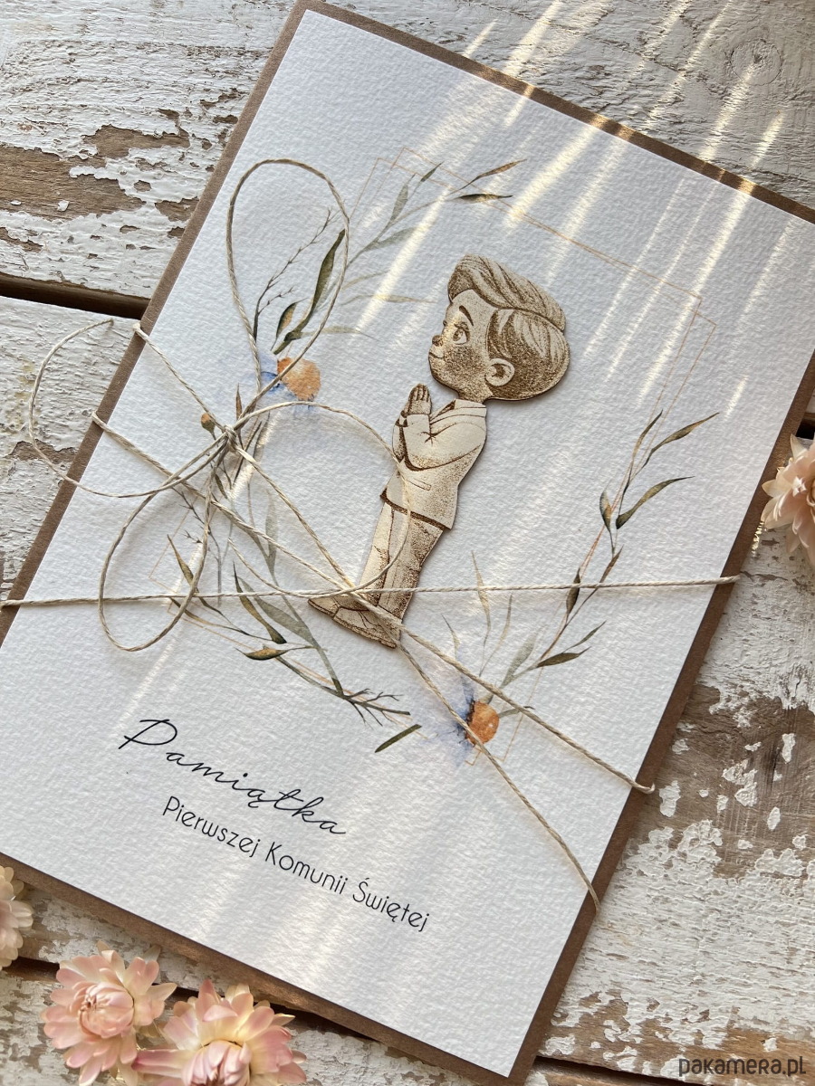 Kartka komunijna ręcznie robiona życzenia na komunię - pamiątka komunijna A5 dla chłopca