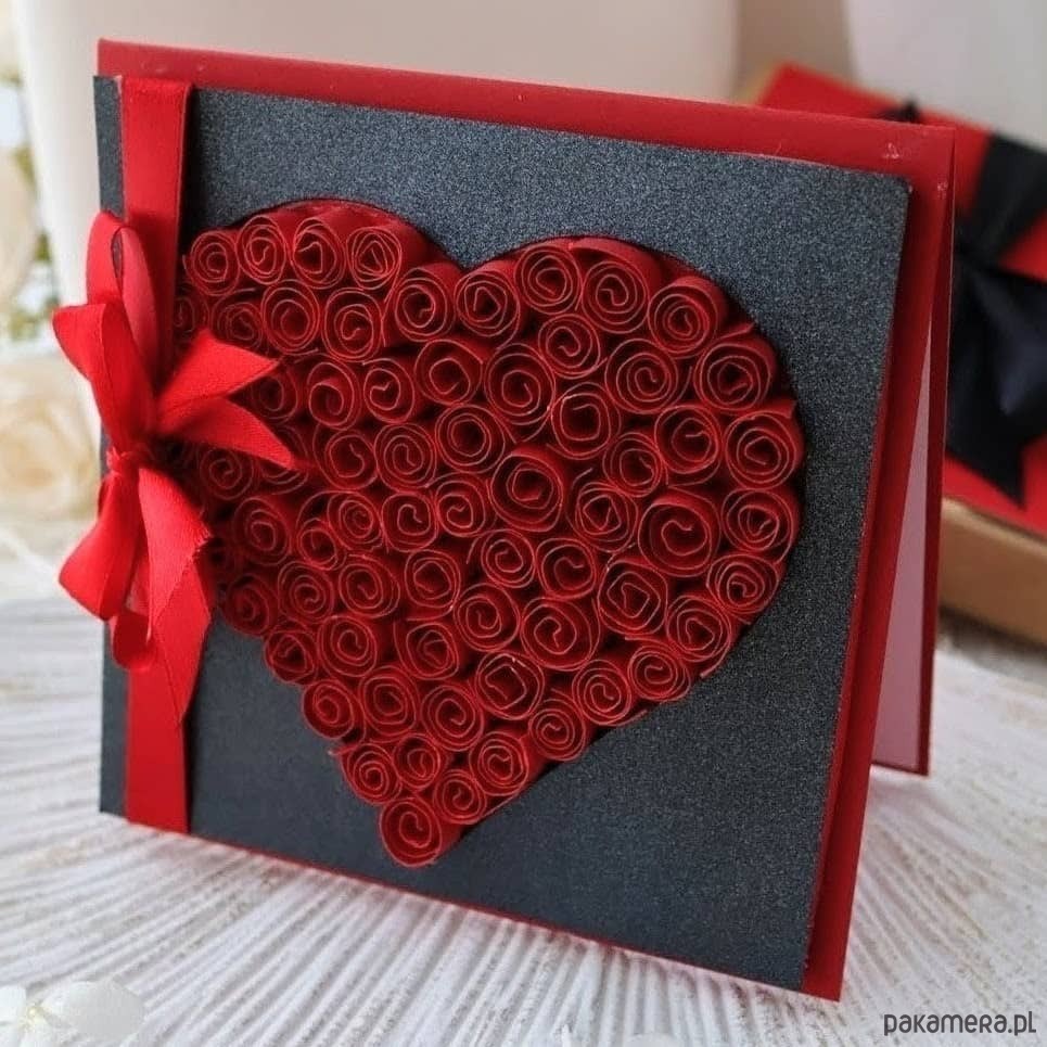 To kartka, która mówi „kocham” bez słów. Czerń i czerwień tworzą duet, obok którego nie da się przejść obojętnie, a serce 3D z rozetek łapie za wzrok i… za serce. Na przodzie kartki dodam krótką dedykację (imiona, data), a w środku wydrukuję Twoje życzenia – romantyczne lub z przymrużeniem oka. Na życzenie wkomponuję kieszonkę na bon lub drobny prezent. Kartka przychodzi w eleganckim pudełku, więc wręczasz od razu. Idealna na rocznicę, Walentynki albo bez okazji – gdy chcesz zrobić wrażenie.