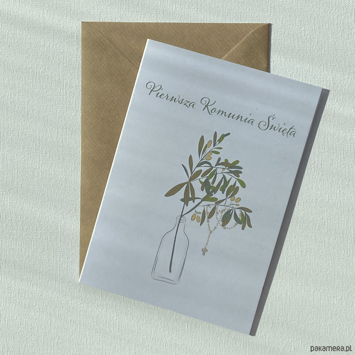 Kartka z okazji Pierwszej Komunii Świętej, minimalistyczny design