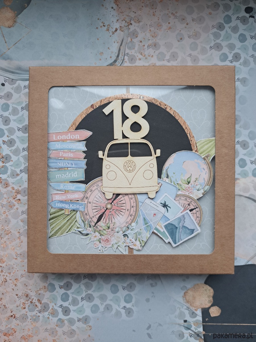 Ręcznie robiona kartka na 18-ste urodziny dla podróżniczki.