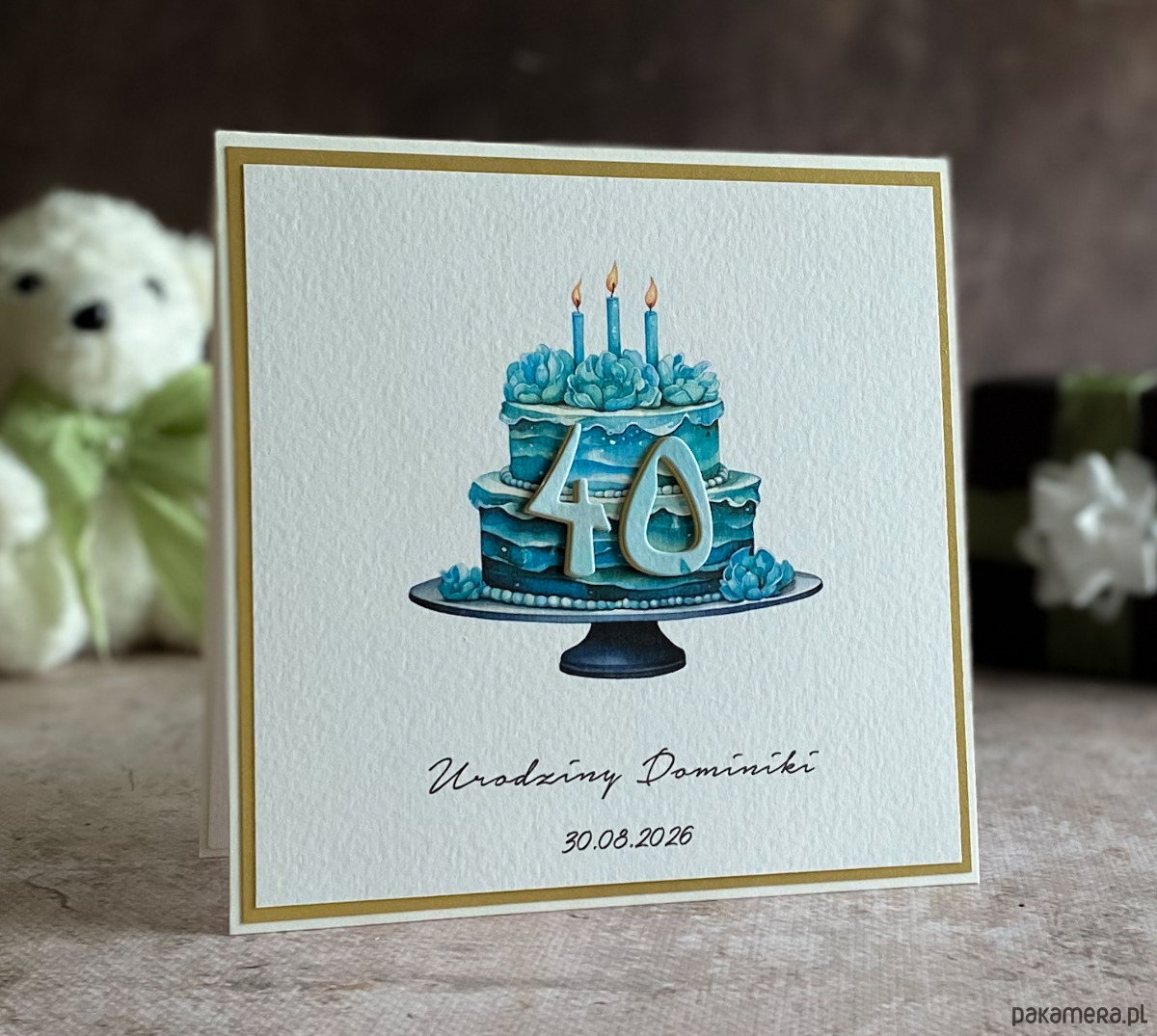 Elegancka, ręcznie wykonana, personalizowana kartka z okazji 40-tych urodzin. Pozycja z naszej autorskiej kolekcji - BE HAPPY!