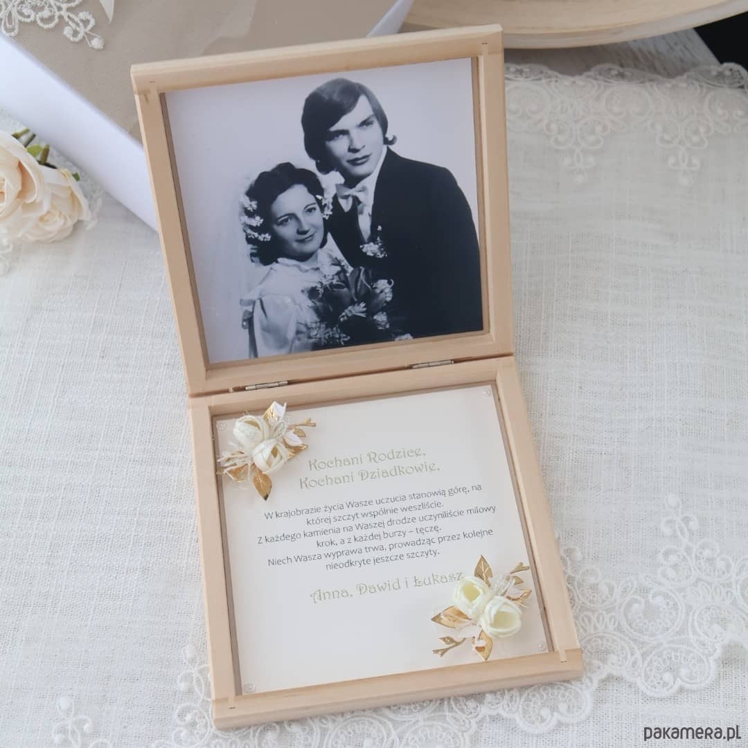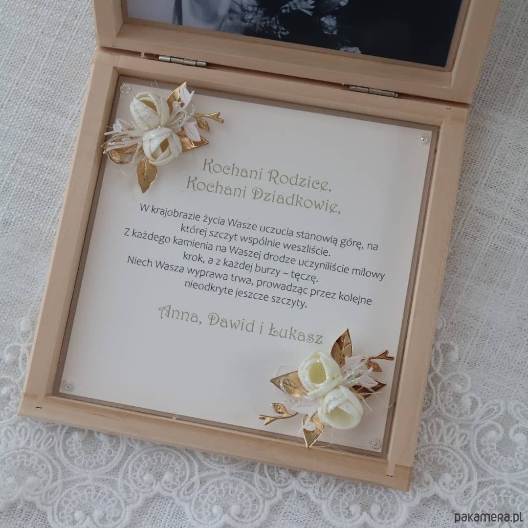Uczcij 50 lat miłości i wspólnego życia wyjątkowym prezentem! Ręcznie robiona, personalizowana pamiątka w drewnianej oprawie którą stworzyłam to idealny upominek na Złote Gody.