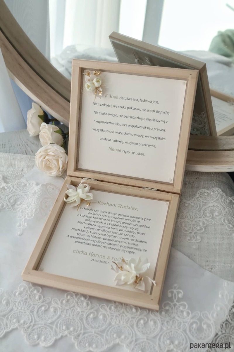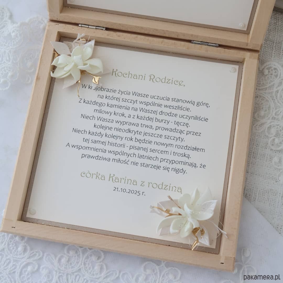 Uczcij 50 lat miłości i wspólnego życia wyjątkowym prezentem! Ręcznie robiona, personalizowana pamiątka w drewnianej oprawie którą stworzyłam to idealny upominek na Złote Gody.