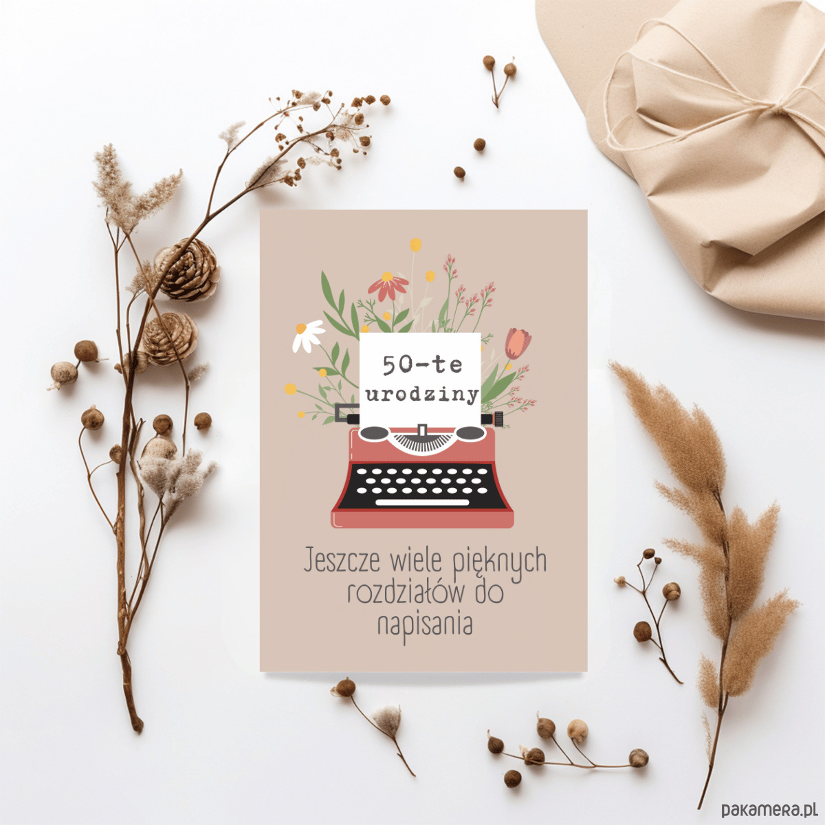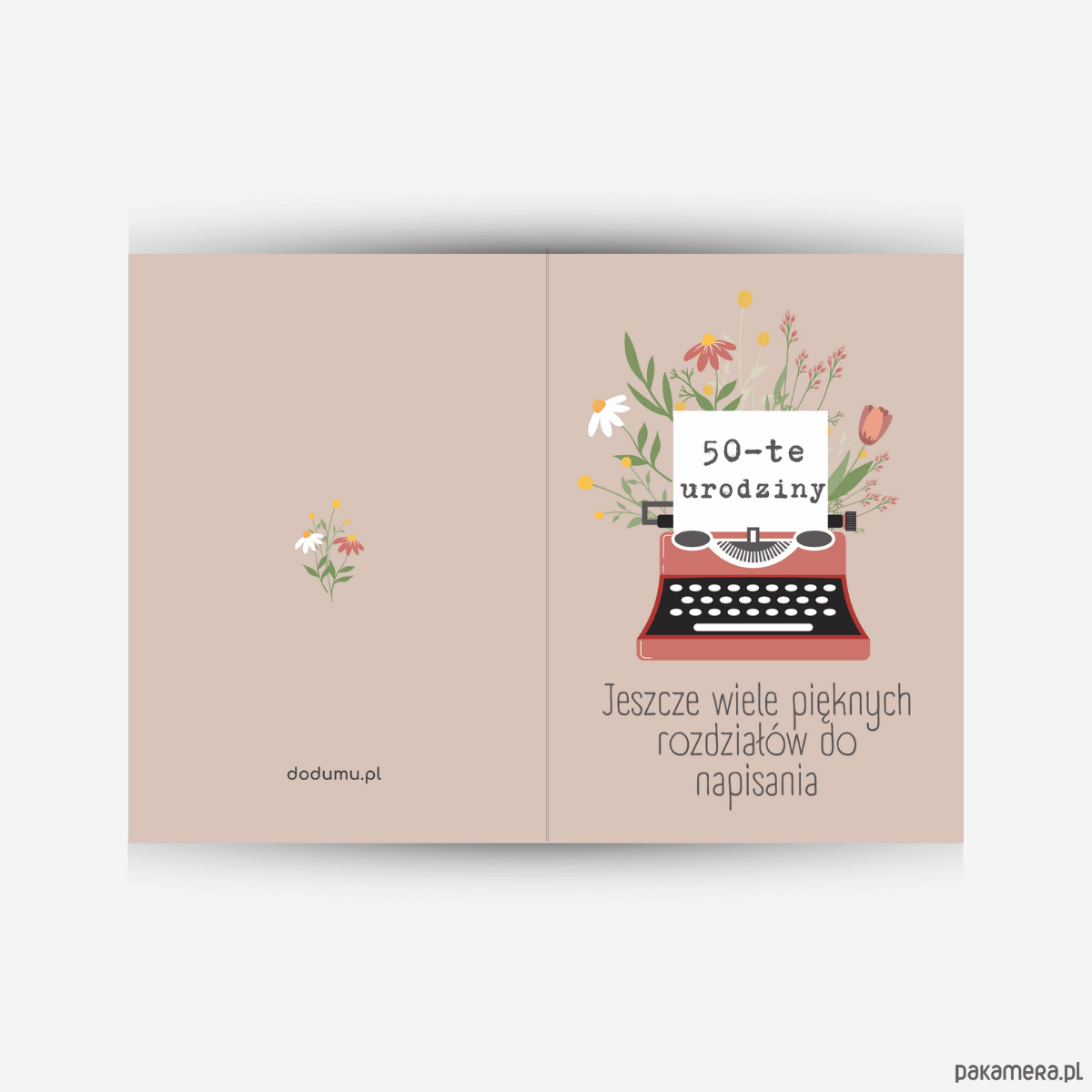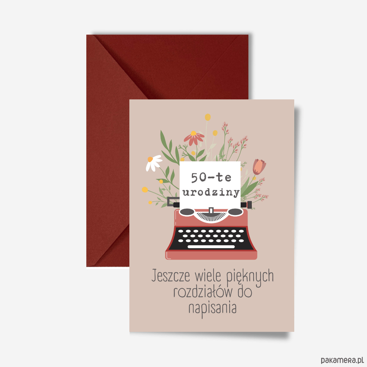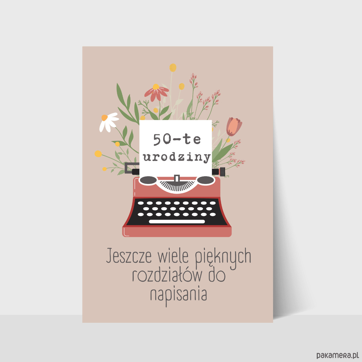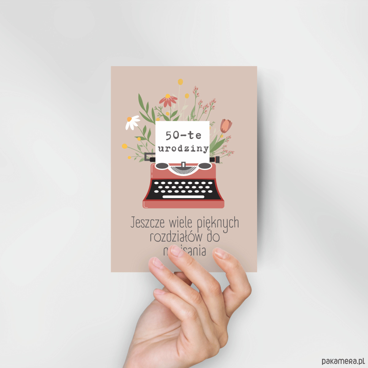Kiedy 50 urodziny się świętuje, niczego człowiek już nie żałuje. W swojej pamięci przywołuje pozytywne wspomnienia, więc do tego tylko życzyć, by się spełniały marzenia. Niezależnie, czy dla babci, dziadka, kolegi, kuzynki, sąsiada czy wujaszka, ciotki, siostry czy braciszka, nawet dla mamy i taty, taka kartka będzie lepsza niż najgłośniejsze wiwaty. Z motywem maszyny do pisania na 50. urodziny idealnym. Do podarku będzie dodatkiem niebanalnym. Dla żony i szwagra, męża, mężczyzny i kobiety, każdy z nich znajdzie uroki tego karnetu i zalety.