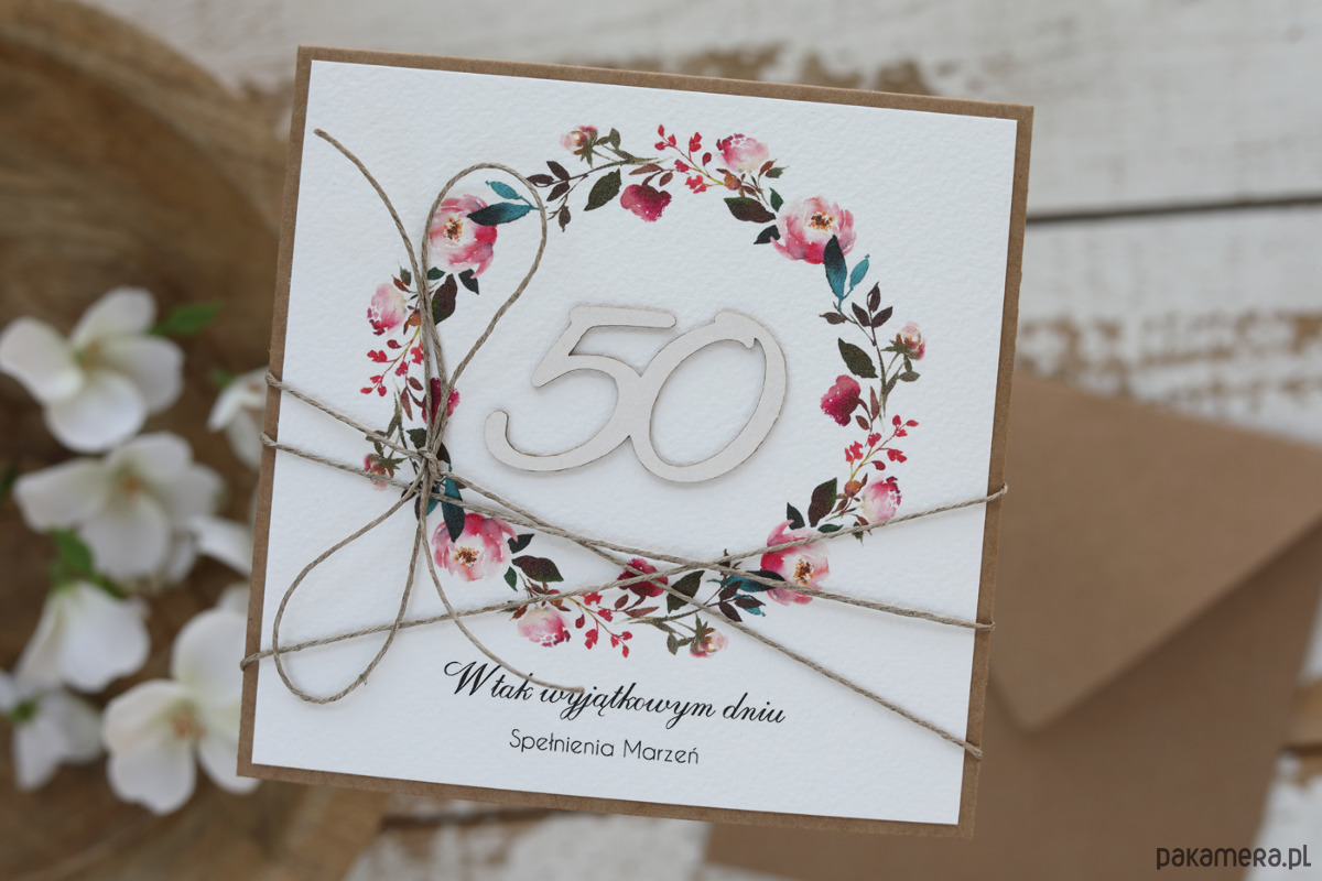 Przedmiotem oferty jest rustykalna kartka na 50 urodziny.