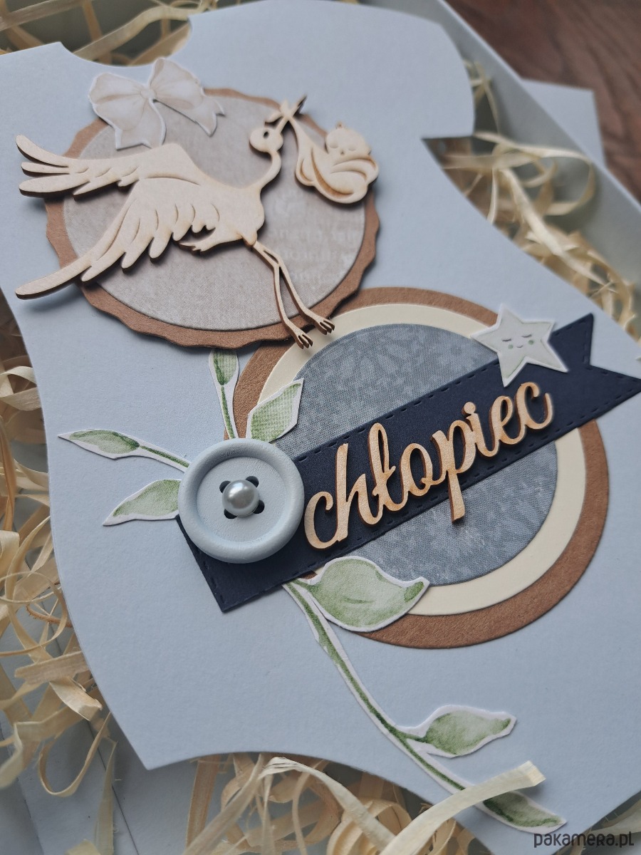 Ręcznie robiona kartka dla przyszłej mamy chłopca.
