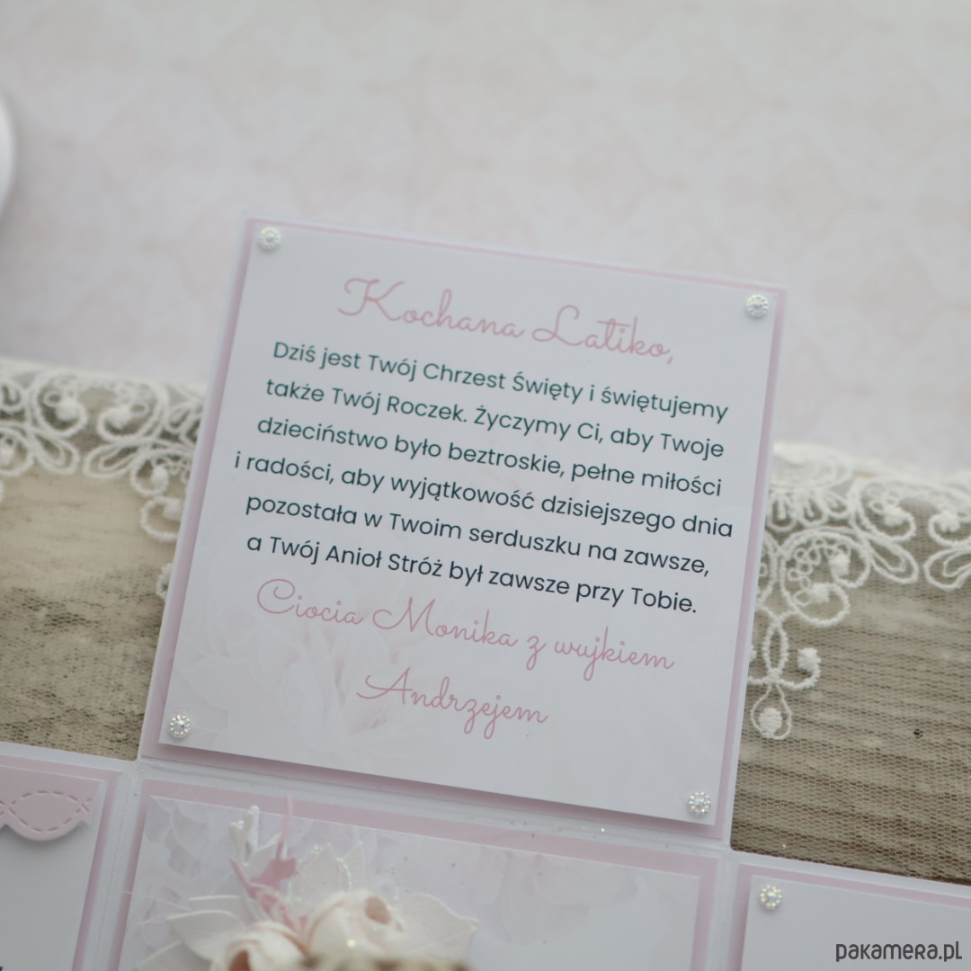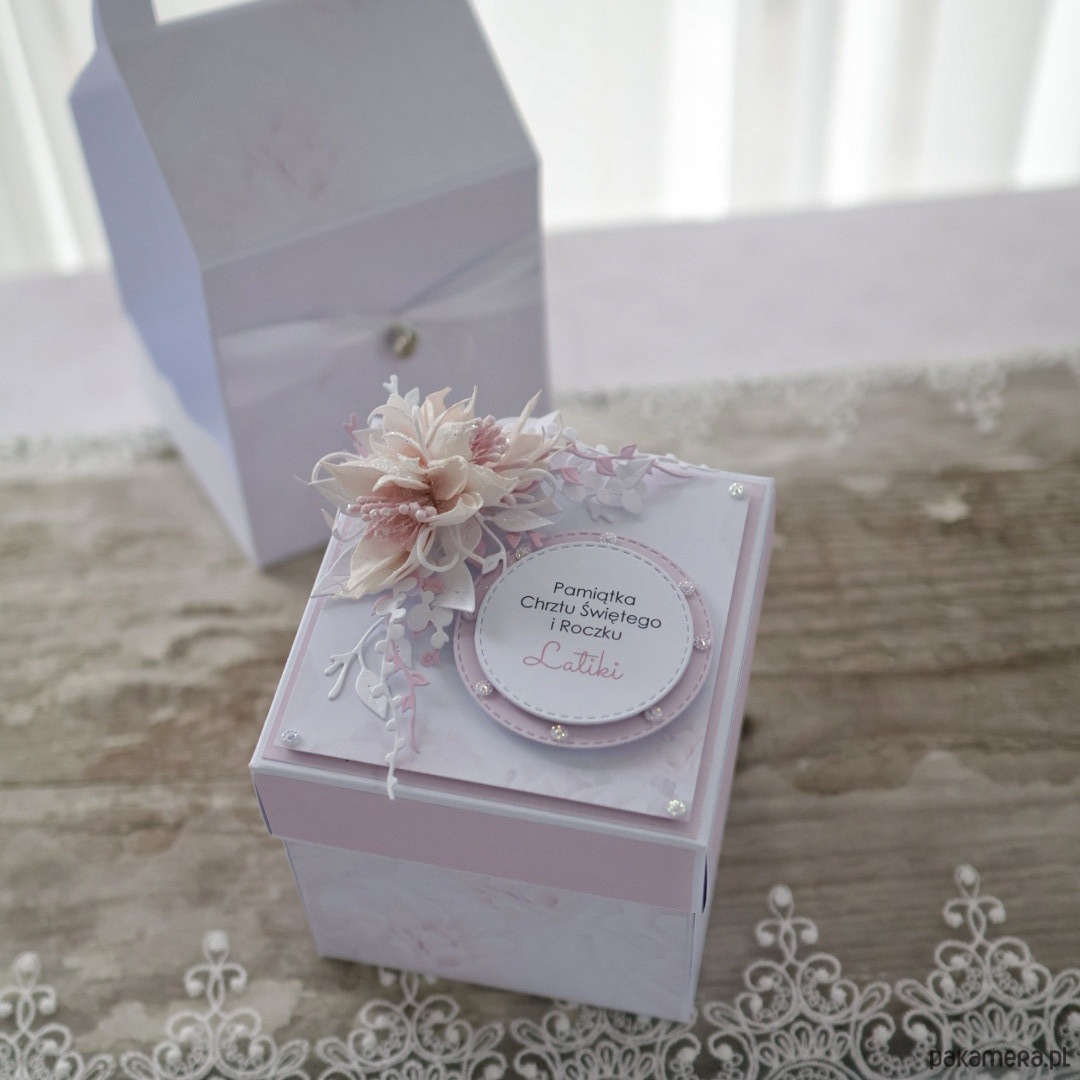 Szukasz pamiątki Chrztu Świętego dla dziewczynki, która zrobi wrażenie już przy otwieraniu? Ta personalizowana pamiątka Chrztu Świętego w formie pudełka to coś więcej niż zwykła kartka. Z zewnątrz eleganckie pudełko ozdobione kwiatami oraz napisem z imieniem dziecka.